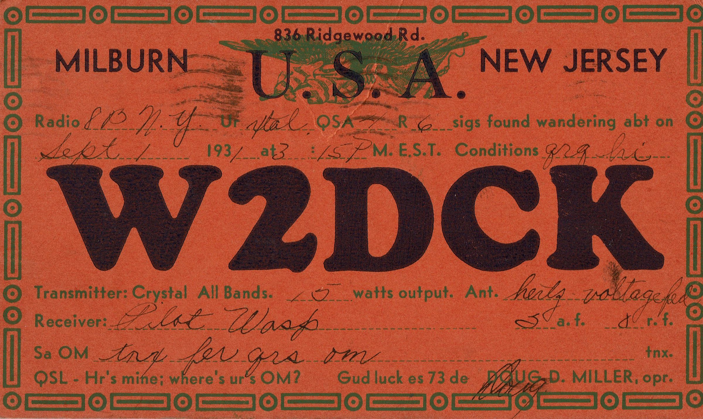 Radio: Ham Radio Postcard W2DCK, 1931Entry/Object ID
