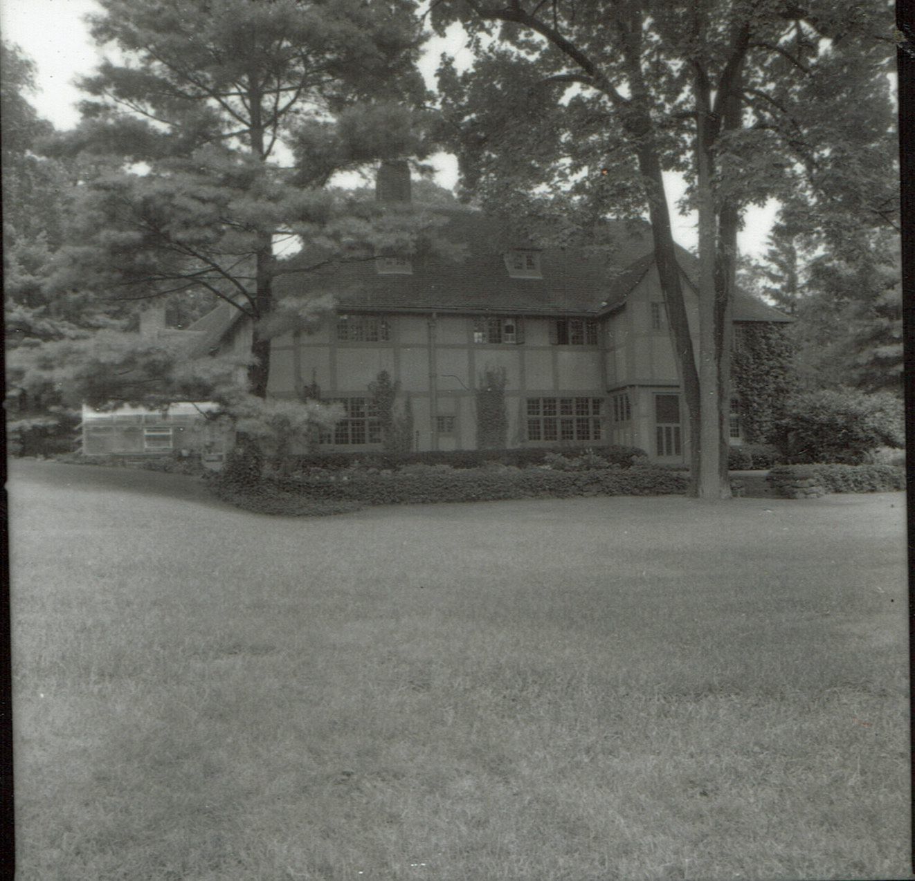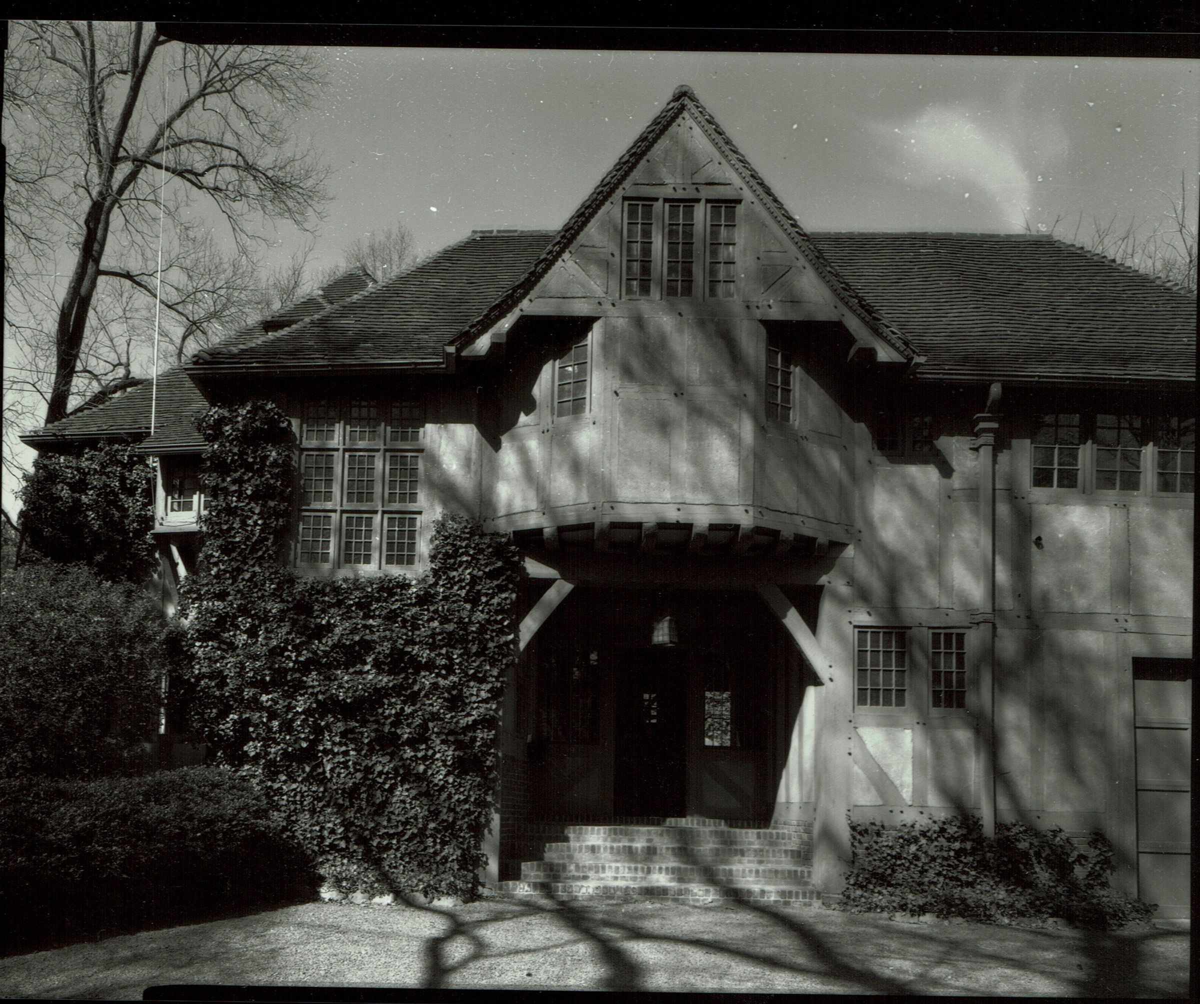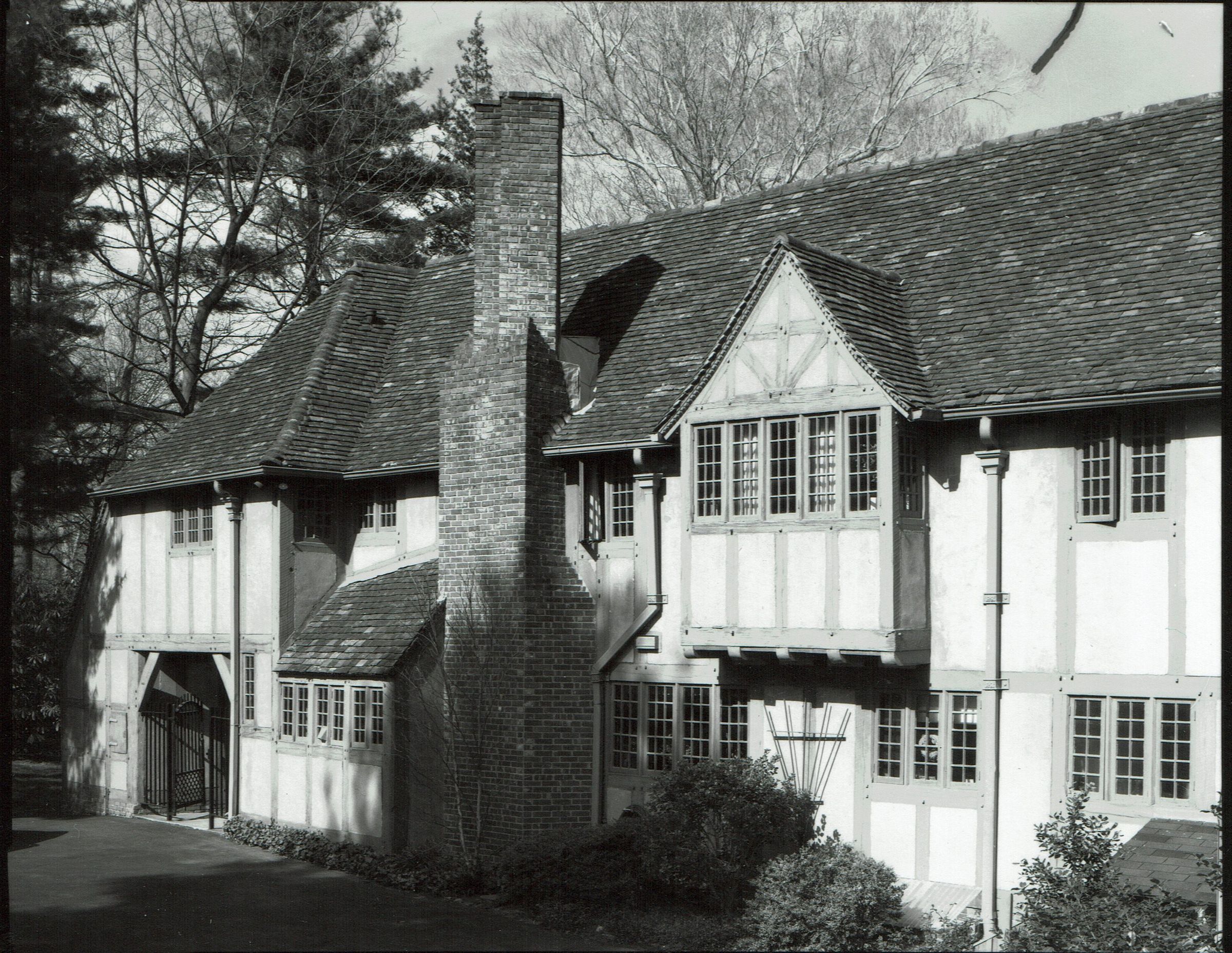 Photograph of 19 Western Drive from the 1978 David Gibson Historic Sites Survey. 19 Western Drive, known as "The Close" was designed by architect Mackay Hugh Baillie-Scott and built for Henry Binsse. Tudor revival style. Baille-Scott was a leading figure in the Arts & Crafts Movement in England. The Close is the only house he designed in the United States.