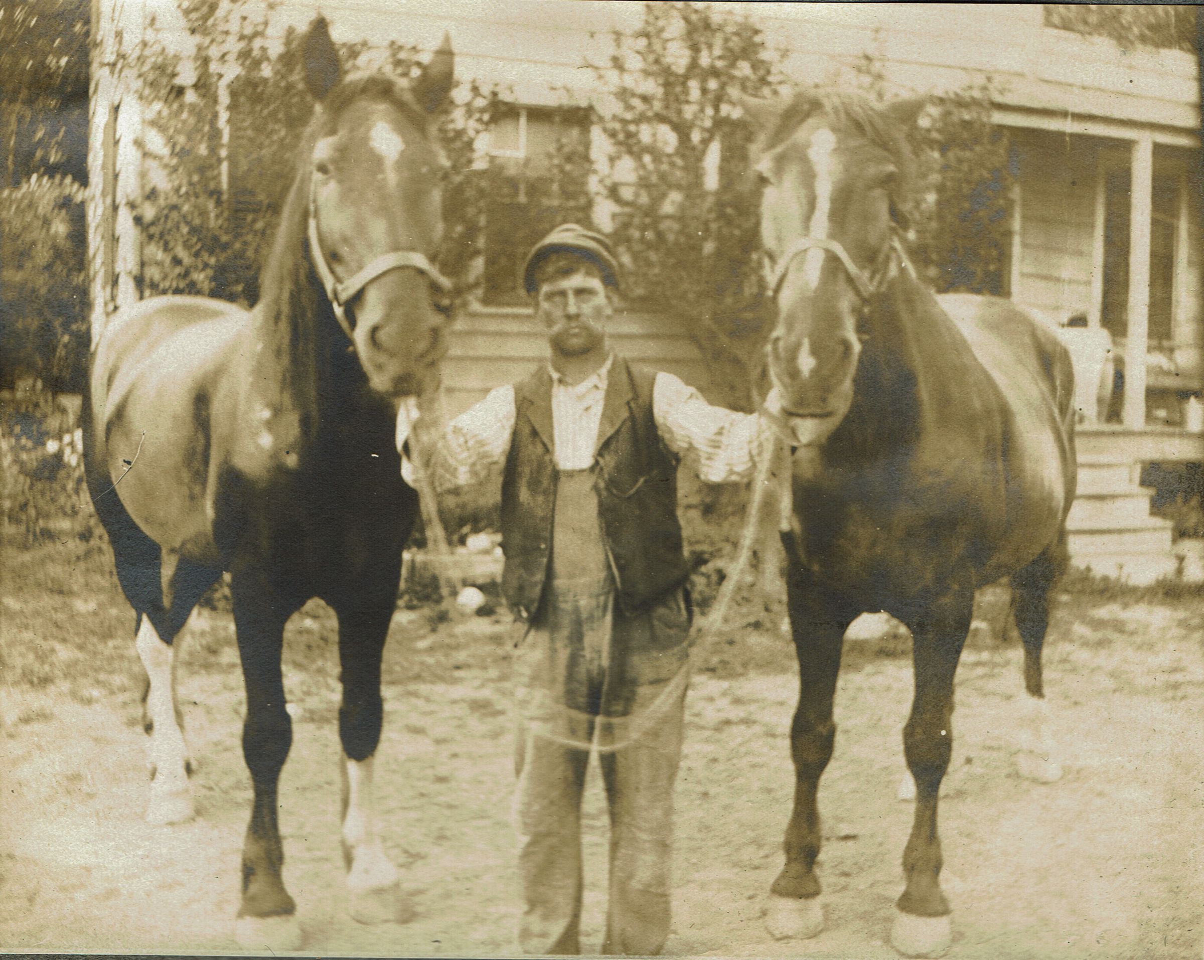 Marshall-Schmidt Album: Man with Two Horses Outside a HouseEntry/Object ID