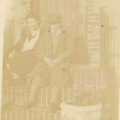Photographs of William, Barbara and John Mangold (1916-1930) on the front steps outside their house at 60 Whittingham Terrace from c. 1928-30.Photograph Details
