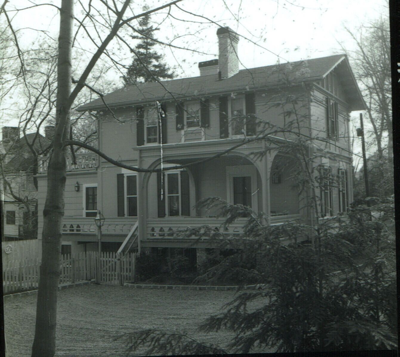 Photograph of 20 Knollwood Road. Hartshorn house #7. Stick style, built 1878. Features: gable roof with brackets, arched entry, porches front and back. Note front eaves. Excellent example of pattern book house. The deed records state that the house was sold by Stewart and Joanna Hartshorn to Marguerite Winslow Little, wife of Arthur W. Little on May 25, 1907. The Littles sold it to Arthur Howard and Anne Evelyn Kingsbury on October 26, 1920.Collection