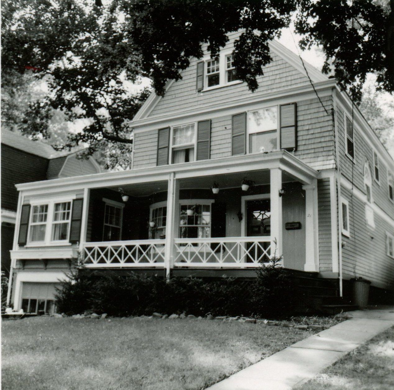 Photographs of 21 Myrtle Avenue in the Wyoming section of Millburn from the 1978 David Gibson Historic Sites Survey. The house was built in 1899. Previous owners were Halter Brent & Forest S. Horton (1919), Frances Aubel (1946), Sharon Comey (1978)
