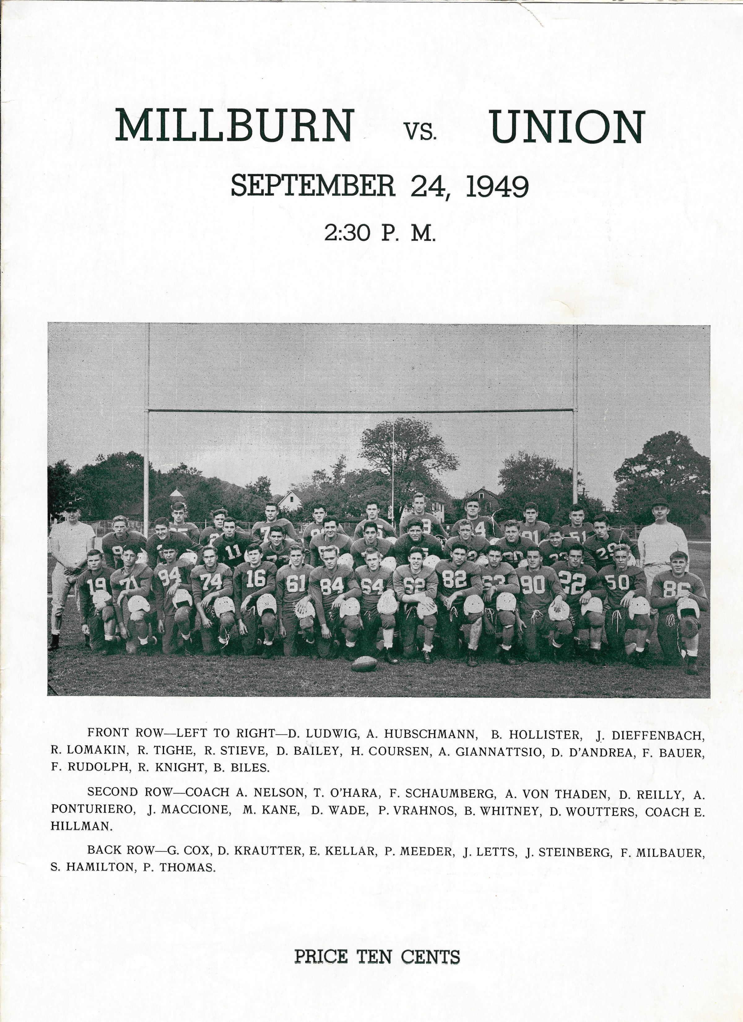 Football: Millburn vs. Union Program, 1949Entry/Object ID