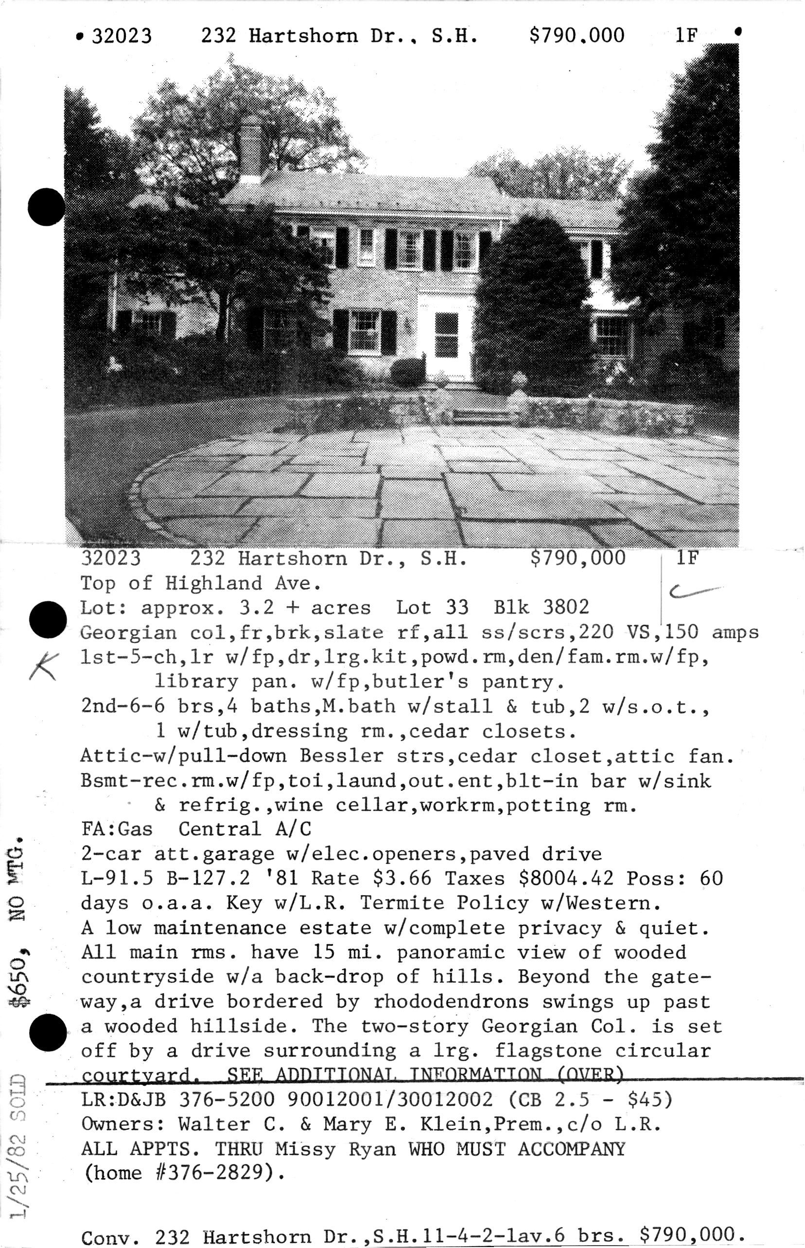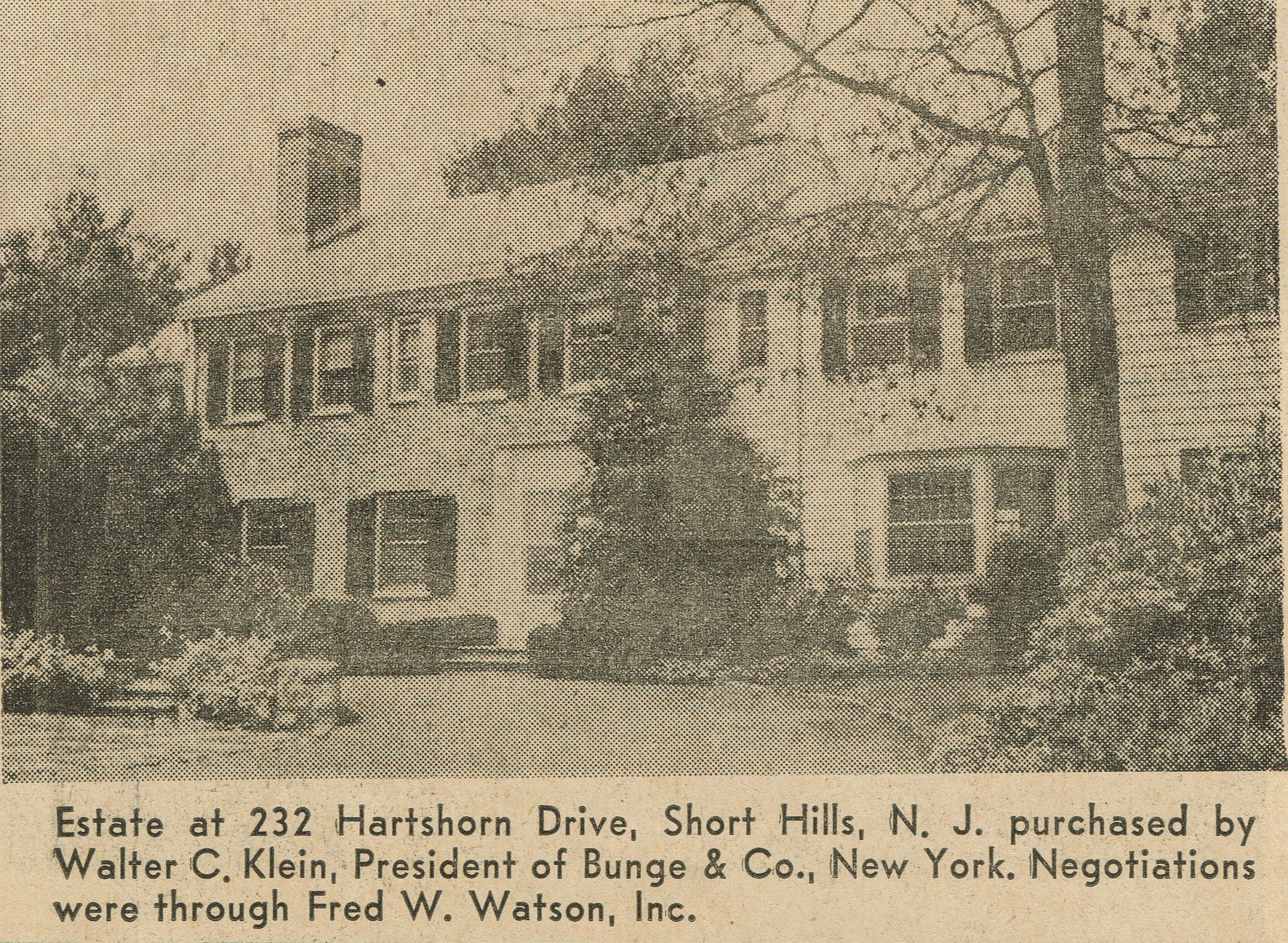 See also photograph from November 24, 1960 edition of the Item. The house was purchased by Walter C. Klein, President of Bunge & Co.