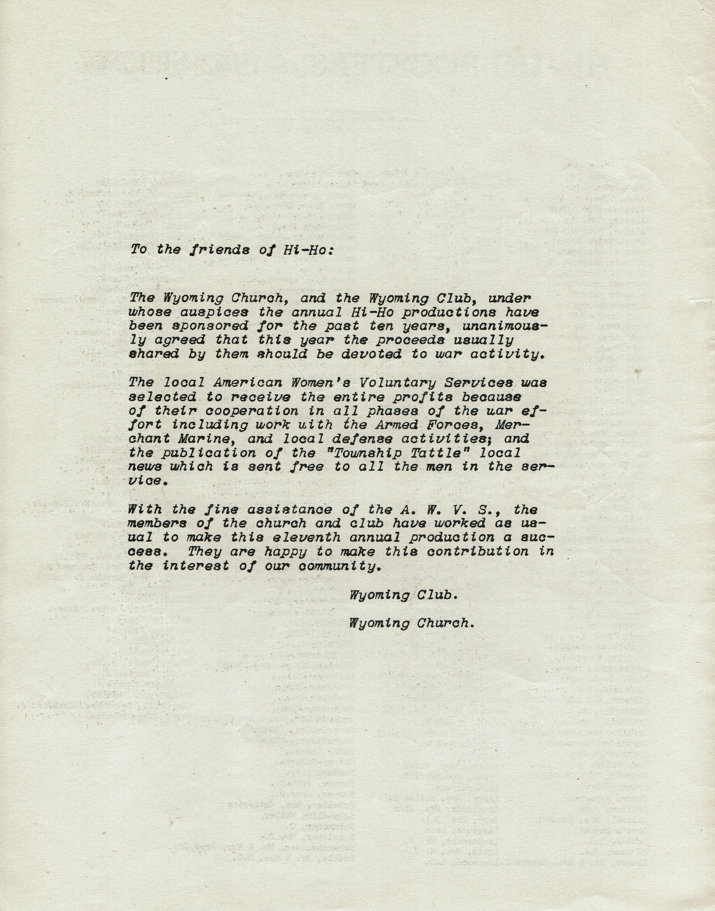 Hi Ho Musical Program, "AWVS on Parade," 1942Entry/Object ID