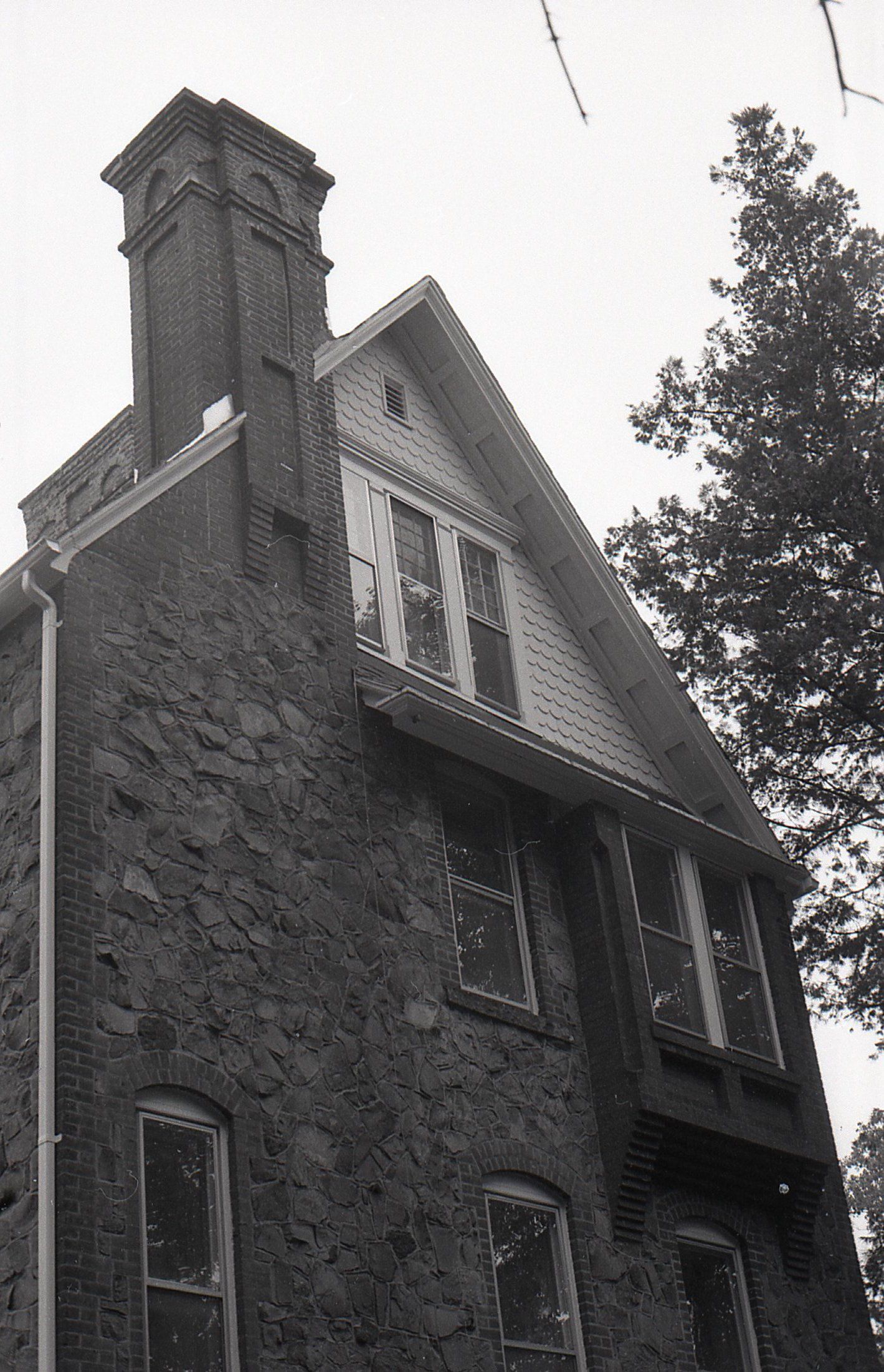 Greystone Cottage (details), 177 Hobart Avenue, from the collection of Charles H. Hayes and taken in 1972. Greystone Cottage was designed by architect Arthur B. Jennings and built in 1880. It was one of the earliest Hartshorn Homes.Photograph Details