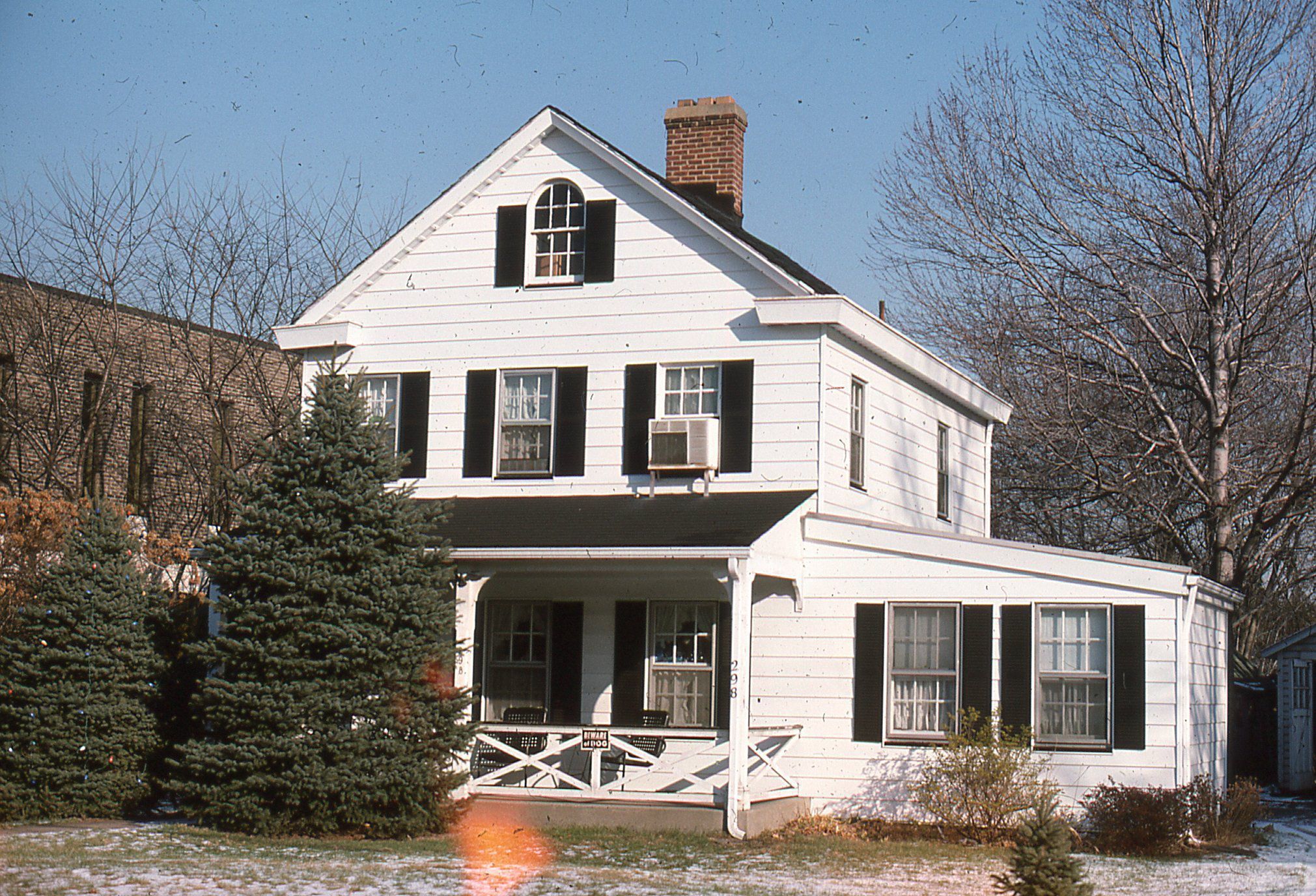 Photograph of 298 Main Street, Millburn taken by Owen Lampe in January 1976. The house was known for being the site of the "Hackleton Elm," an over 200 year old Elm tree that had a cannon ball from the Revolutionary War lodged in its trunk. During a surgery operation in the 1950's, the cannonball, evidently fired in the fighting with the British on June 23, 1780, was removed from its trunk.The house stayed in the Oliver family until 2023 and was demolished in 2024.Photograph Details