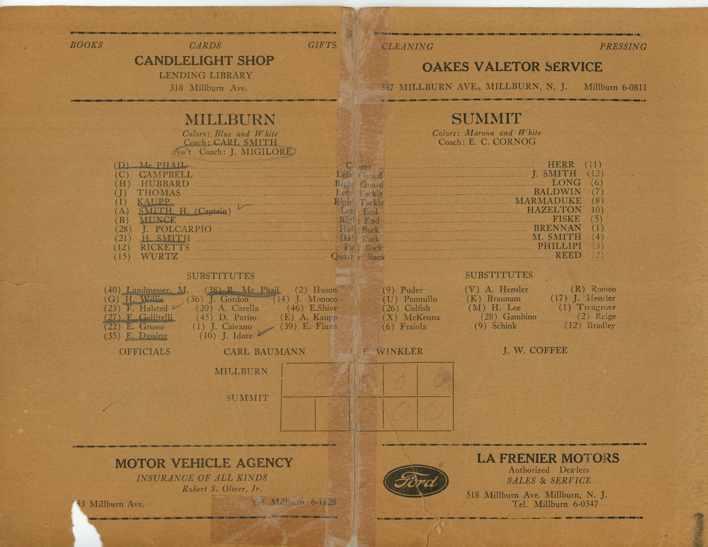 Football: Millburn vs. Summit Program, 1934