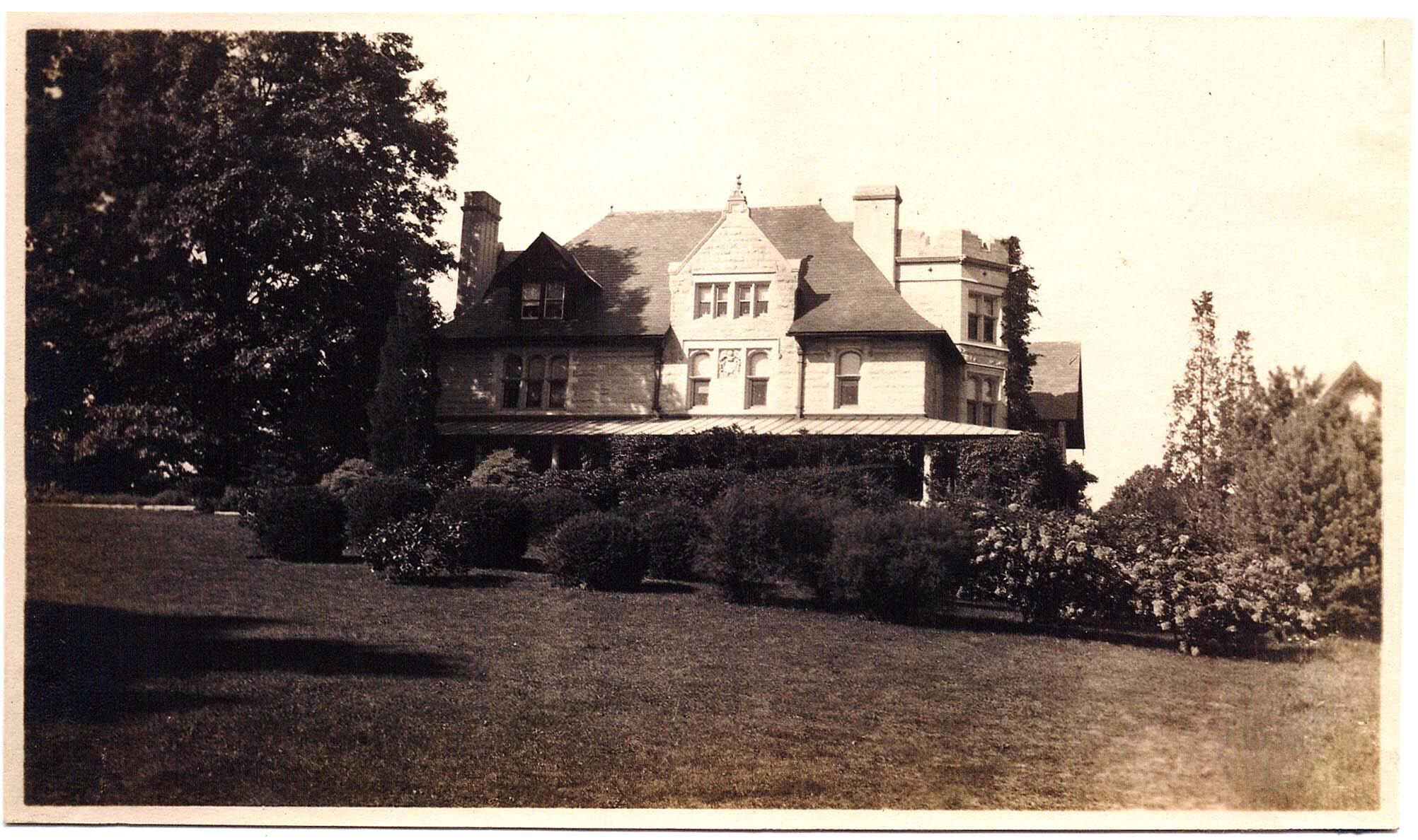 Twin Oaks, or Stonehaven Manor, was built for Gilbert Cameron Brown, who was the head of the Newark based stone cutting firm George Brown & Co. The design of the house was previously attributed to architect George B. Post, but research into the house by William Barry Thomson suggests it was designed by architect Tysilio Thomas, who lived at 105 South Terrace, and most likely designed that house also.