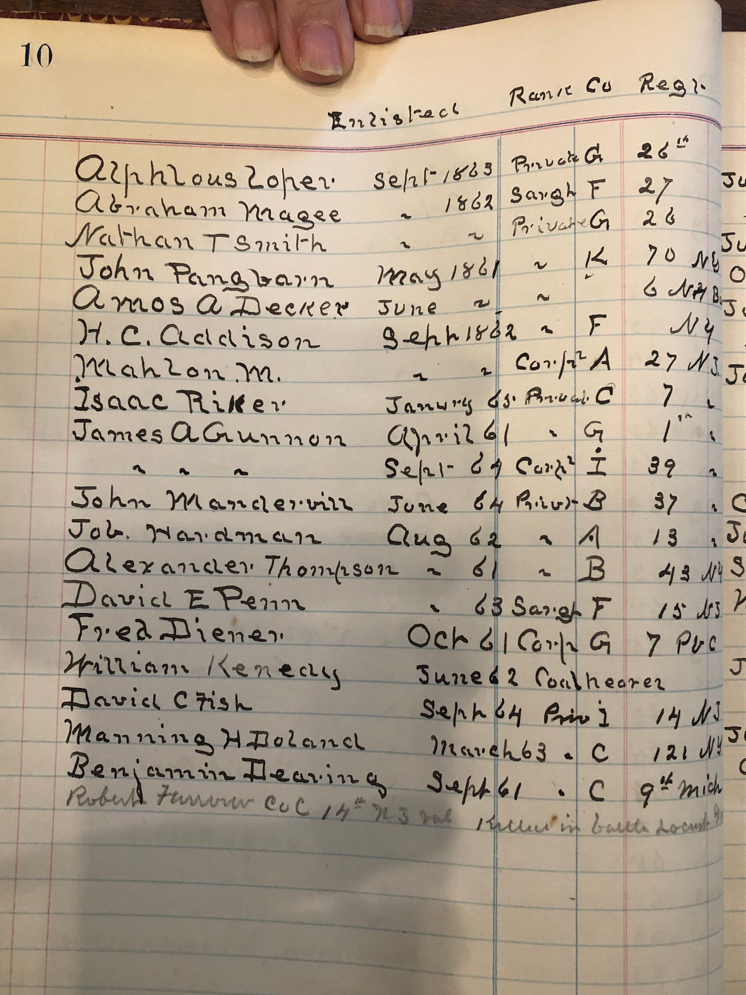Handwritten notebook detailing membership in the Edward H. Wade Grand Army of the Republic Post 96 and "Black Book" (people dishonorably discharged, imposters, etc). Papers included are names of veterans buried in St. Stephen's cemetery. The Edward H. Wade G.A.R. Post #96 was established in 1885 and named for Captain Edward H. Wade, who died in October 1862 from wounds suffered at the battle of Antietam.Acquisition