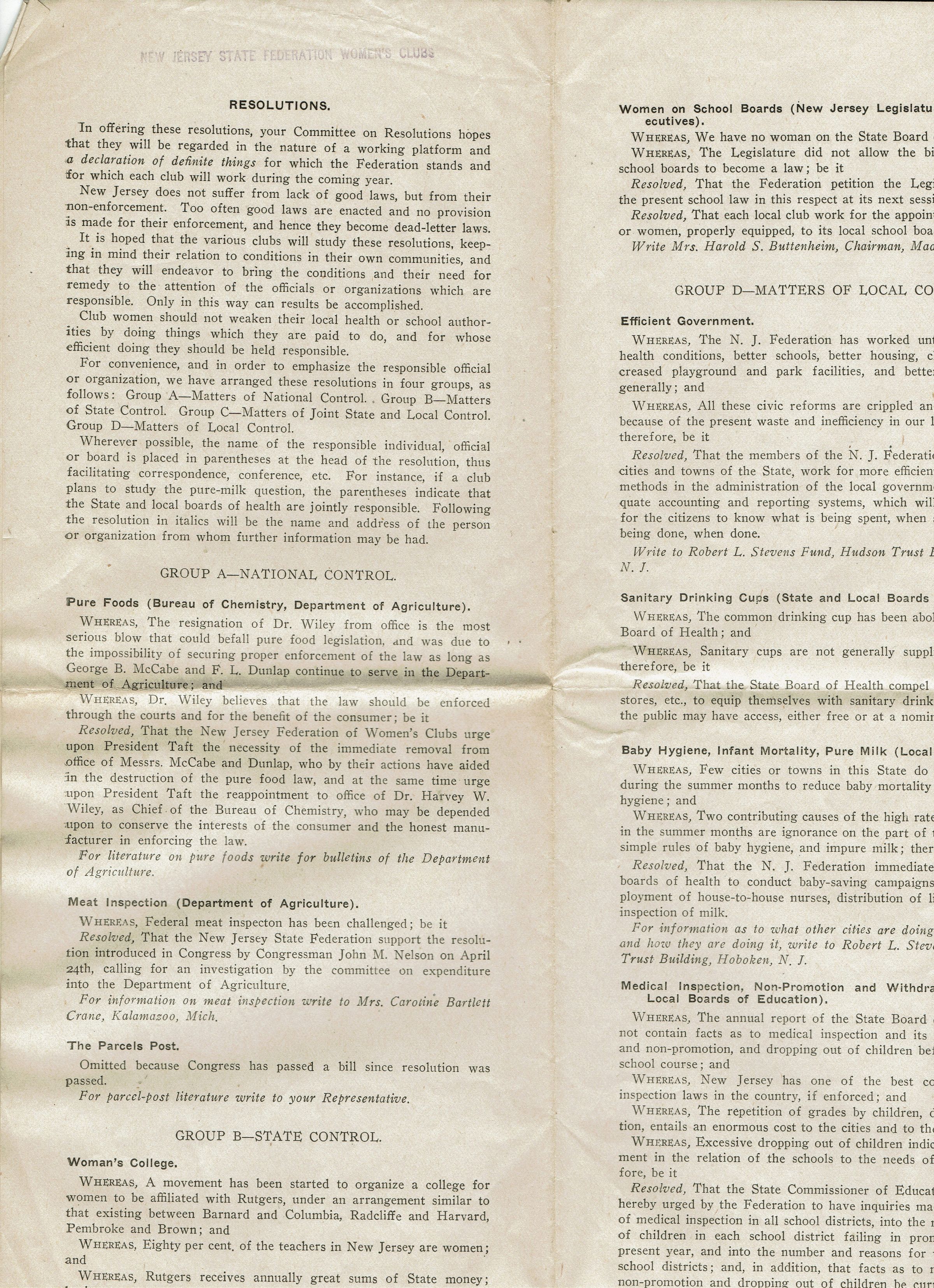 Kellogg: New Jersey State Federation of Women's Clubs Document, c. 1909-1911Entry/Object ID