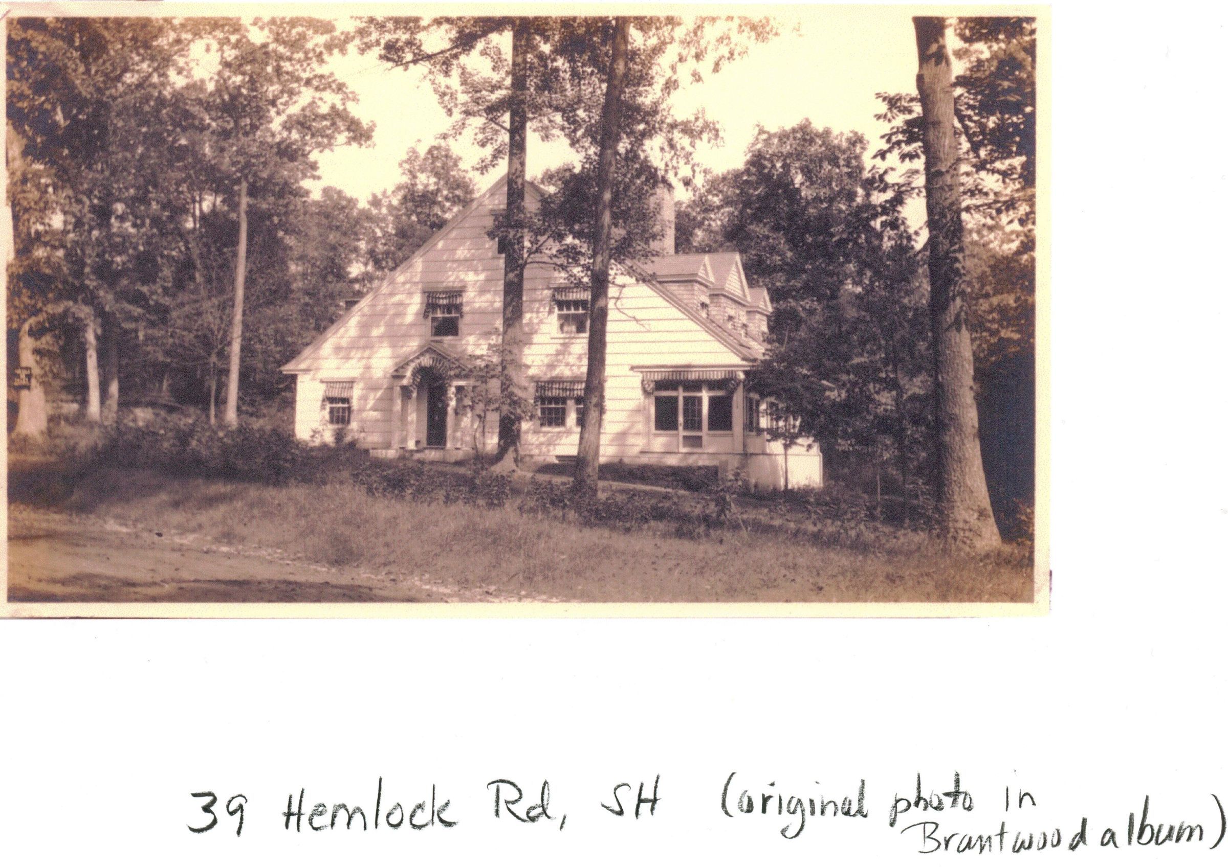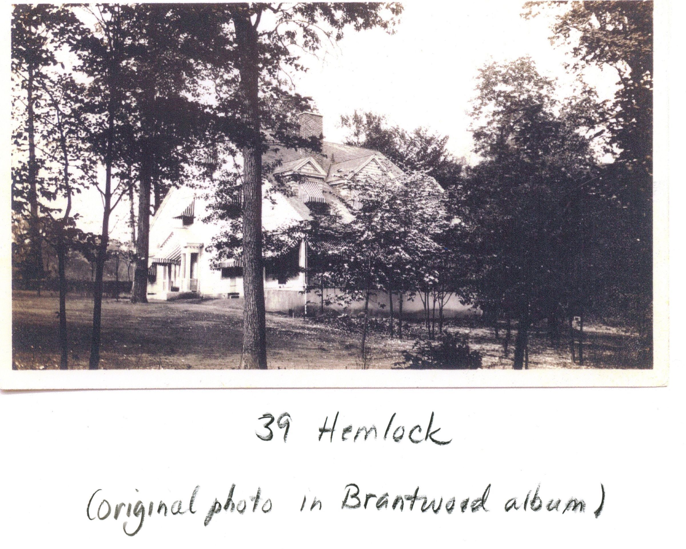 Photograph of 39 Hemlock Road from the 1978 David Gibson Survey. House was built c. 1905 on land owned by the Hartshorn Estate, Inc. Owner in 1912 was Edward G. Lowry. Owner in 1919 was Carl F. Bayard.Collection
