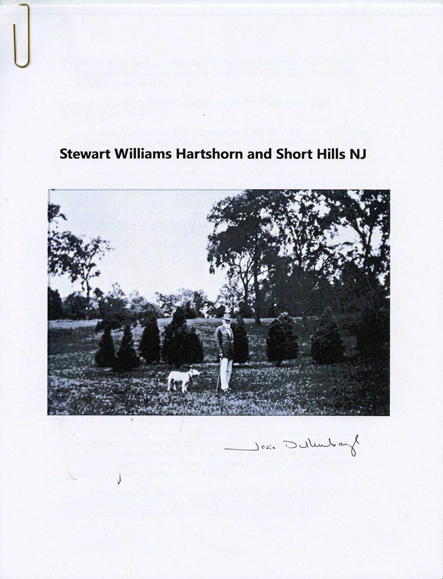 Eleven-page, newly created and computer-generated biography of Short Hills founder Stewart Williams Hartshorn, written by Hartshorn descendant Joanna (Josie) Dellenbaugh. The biography includes numerous, color, family photos and early photos of Short Hills.Acquisition