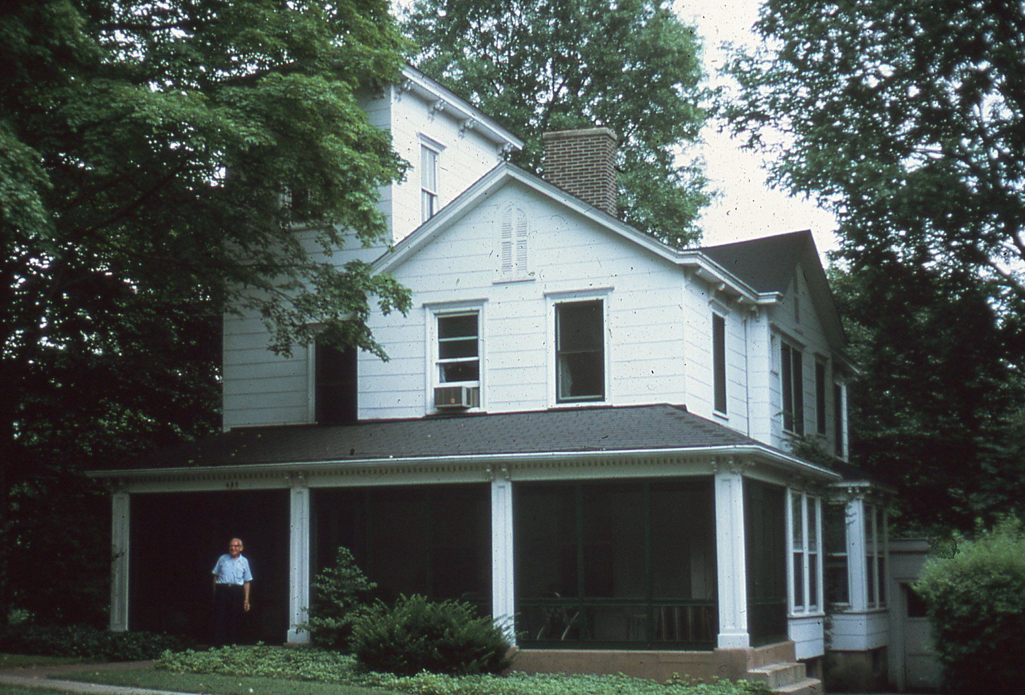 Photograph of 430 Wyoming Avenue taken by Owen Lampe in August 1977. The house was constructed c. 1870s. Tower House in the Tuscan Villa Style from c. 1870s. The land was the property of Edward S. Hand and then passed to James A. Williamson in October 1872. It then passed to Emma Smith in 1912 and Frank Jewett. In 1921 the house was owned by Samuel Shackleton and stayed in the Shackleton family until 1991. The house was one of six tower homes built in the early 1870s that were among the first homes to be built in Millburn. Originally constructed as an early development, the 6 properties were spread across farmlands.