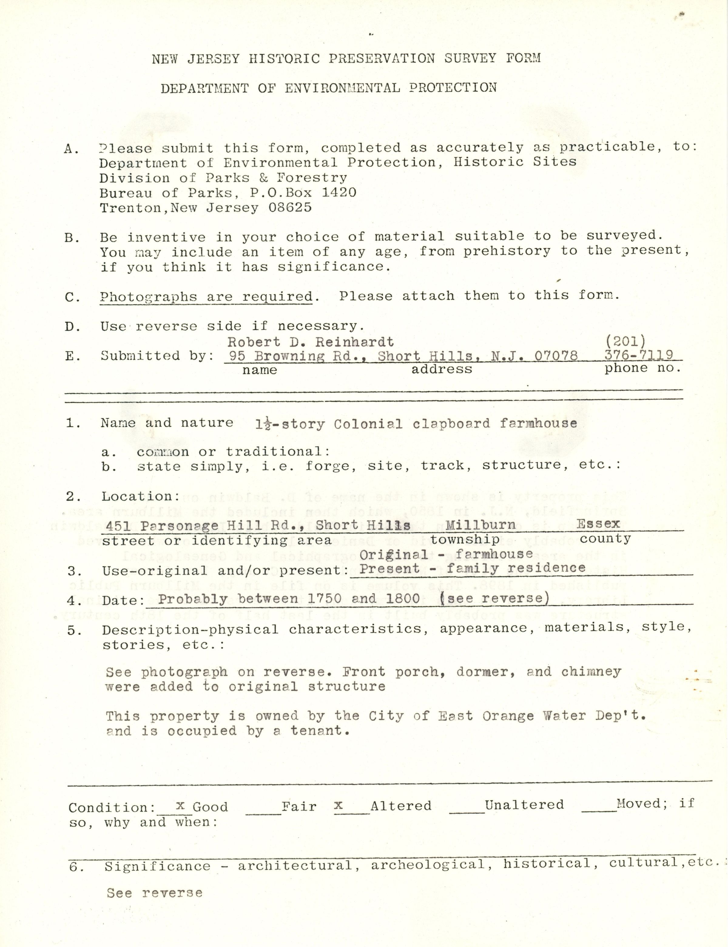451 Parsonage Hill Road. c. 1980Description