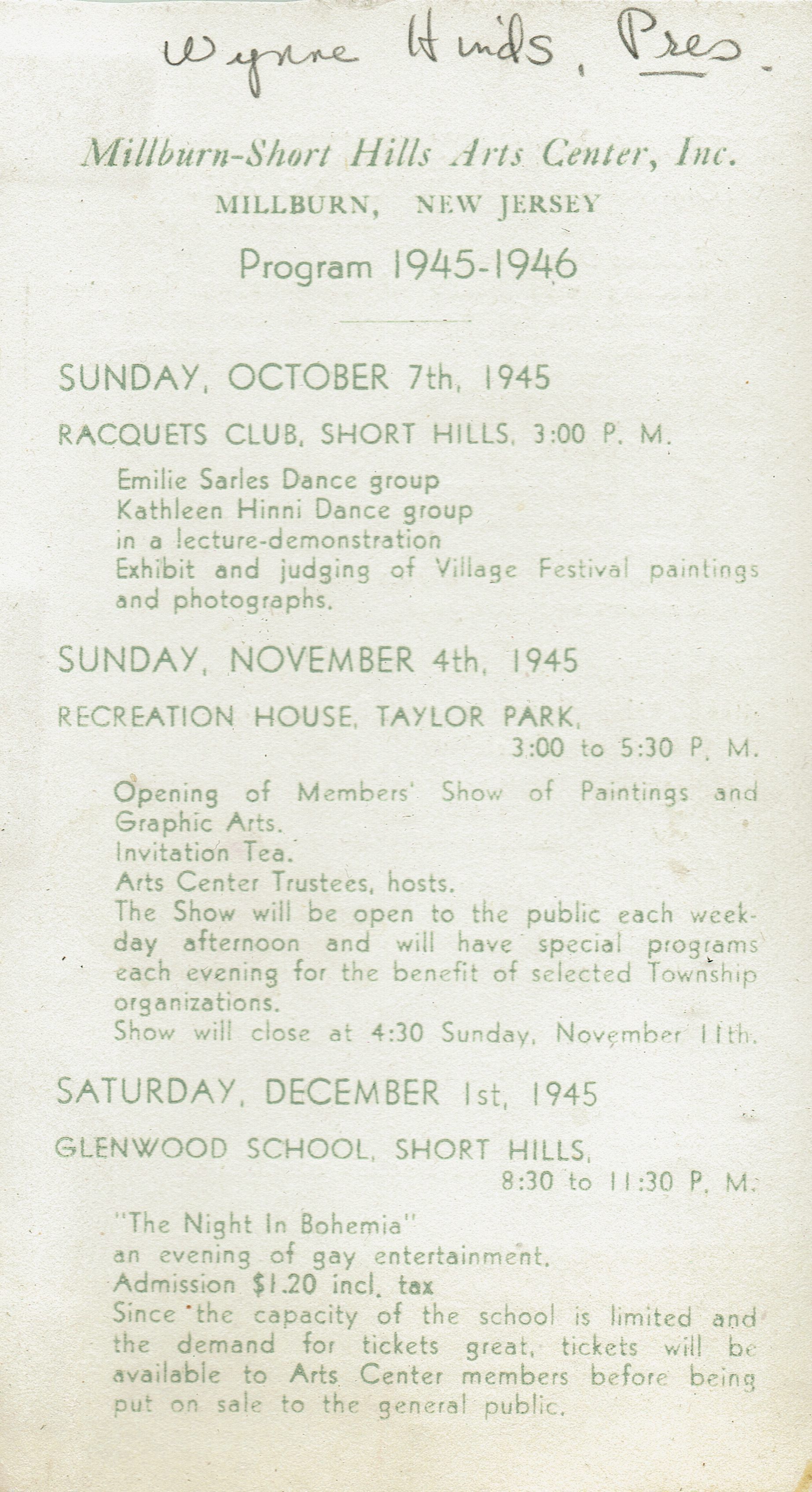 Millburn Art Center 1945 Scrapbook: Millburn Art Center Schedule of Programs, 1945-6Entry/Object ID