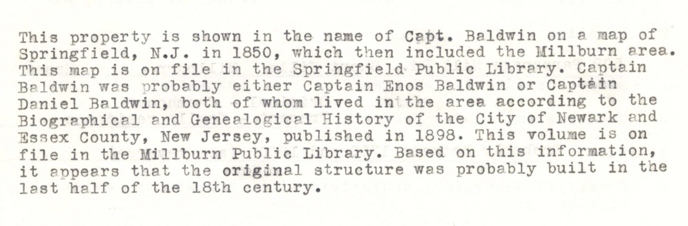Photograph of 509 Parsonage Hill Road from the 1980 Historic Preservation Survey. House is a 2 1/2 story Colonial clapboard farmhouse dating from the late 1700s-early 1800s. It appears on an 1850 map of Springfield with the property belonging to a Captain Baldwin. Demolished in the 1980s.
