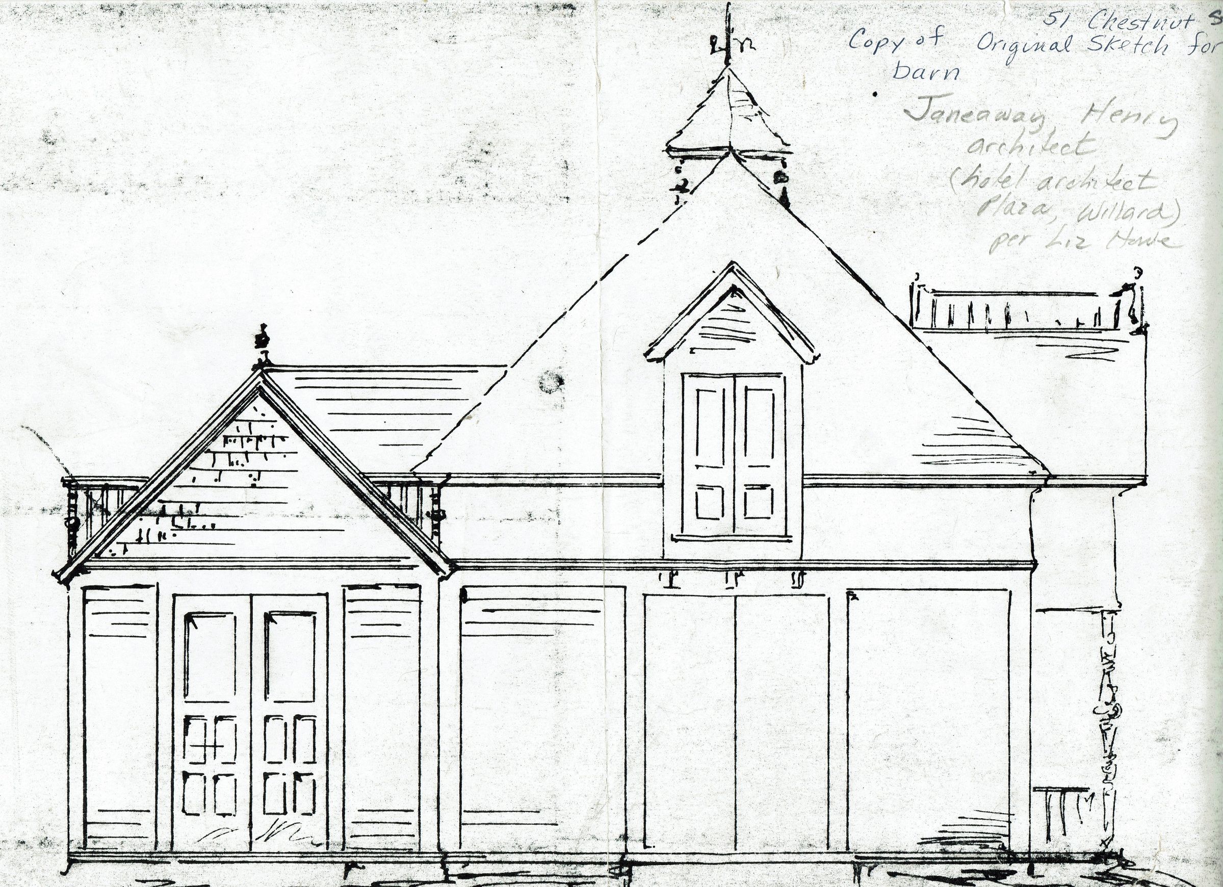 Sketch of the barn for 49 Chestnut Street attributed to Henry Janeway Hardenbergh, c. 1870.