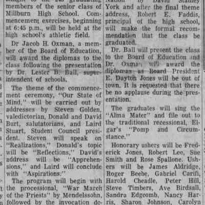 Millburn High School: Commencement Exercises, 1961Entry/Object ID