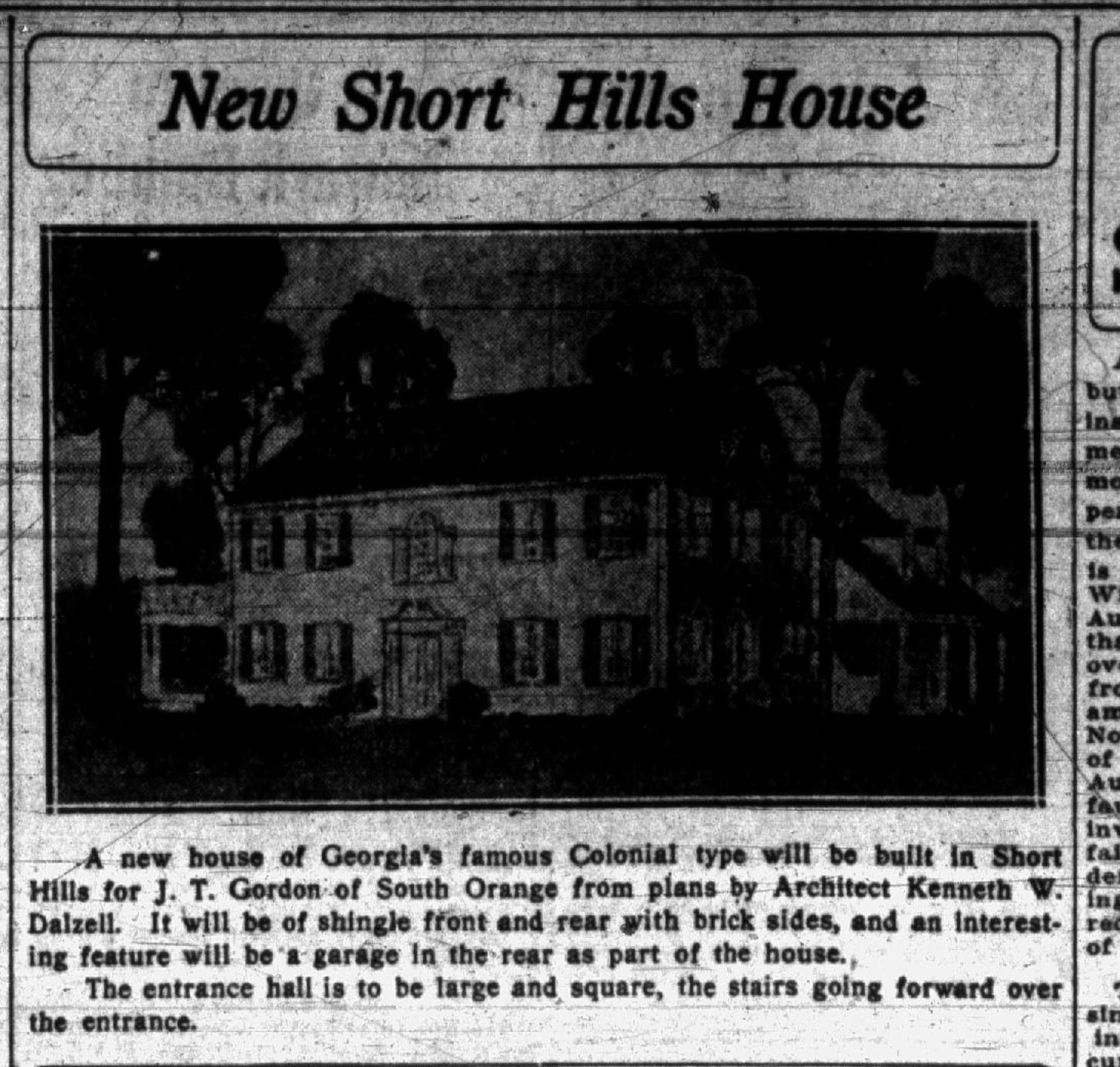 The house was featured in the September 9, 1923 Newark Evening Call and was described as a Georgian Colonial style house with brick sides & a shingle front and rear.