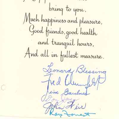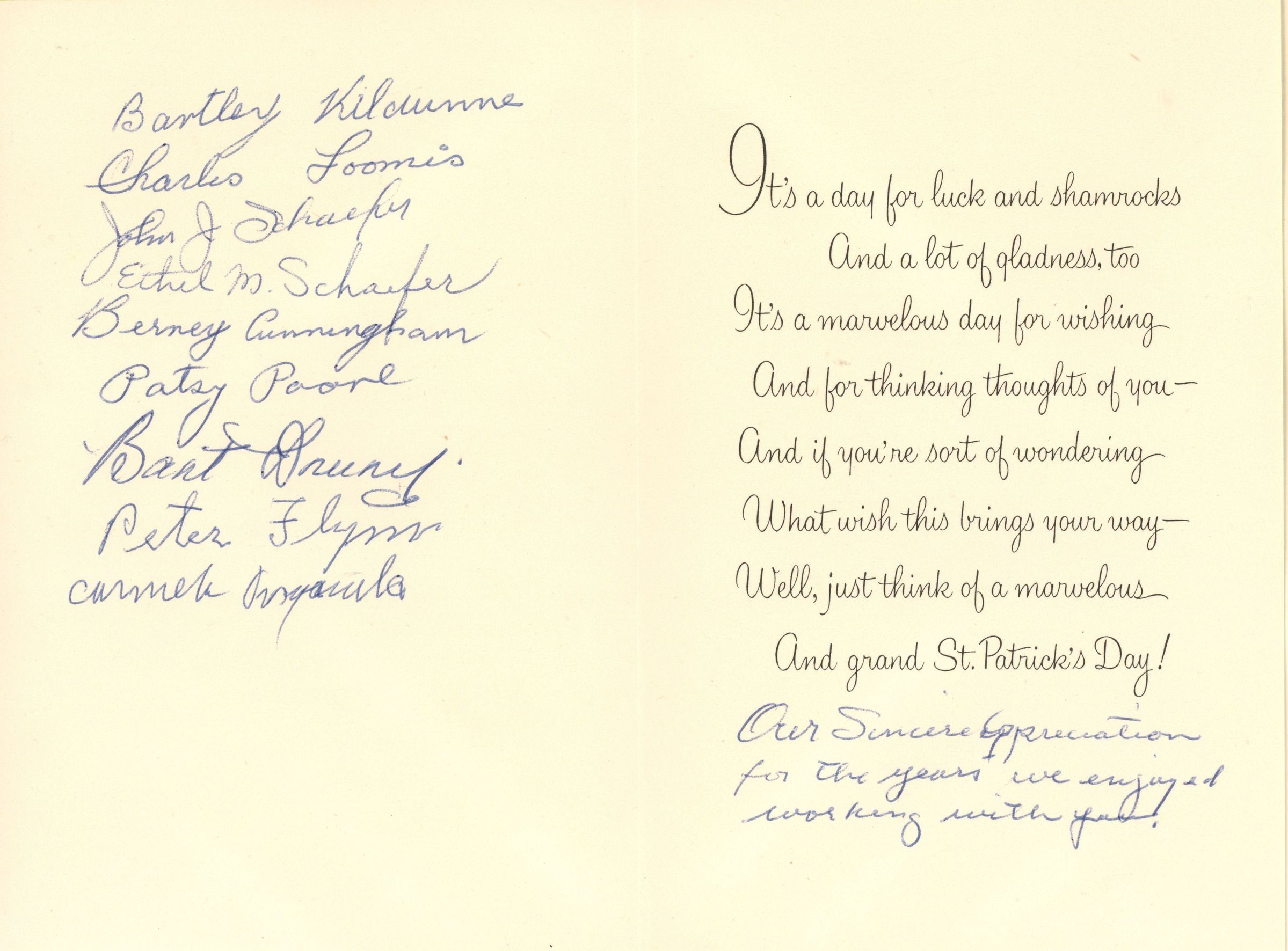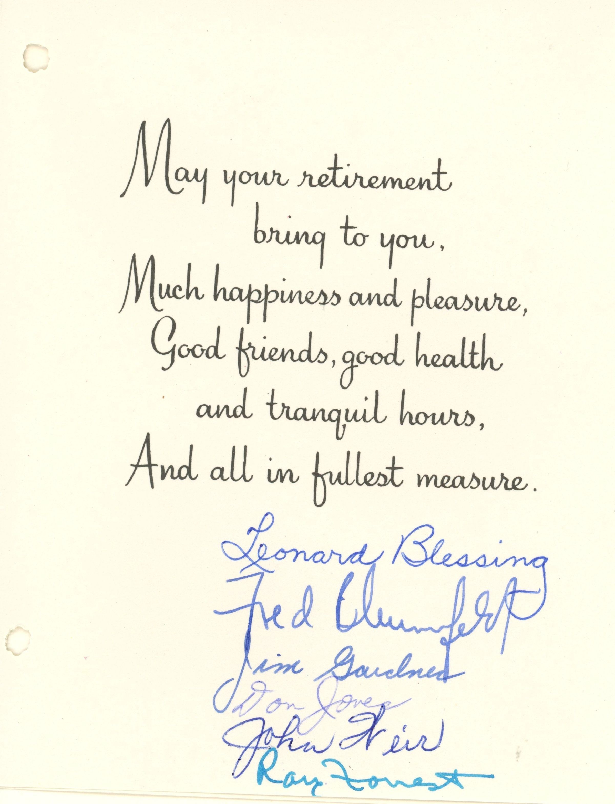 Faddis: Robert Faddis Retirement Cards, 1961Entry/Object ID