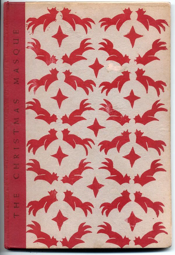 Red and gray ca. 22-page hard cover 1956 book titled The Christmas Masque with woodblock illustrations printed by students at Far Brook School in Short Hills. Ca.1" water spot on front cover. Ca 2" long tide line on top right corner of front cover. Ca 2" wrinkle coming up from bottom edge of front cover. Rippled spot in middle of back cover.Acquisition