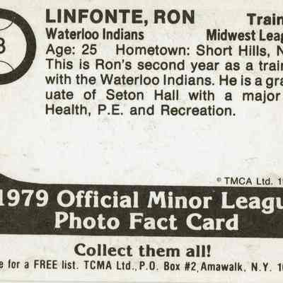 1979 Minor League Baseball Card for Ron Linfonte from Short Hills, N.J.Acquisition