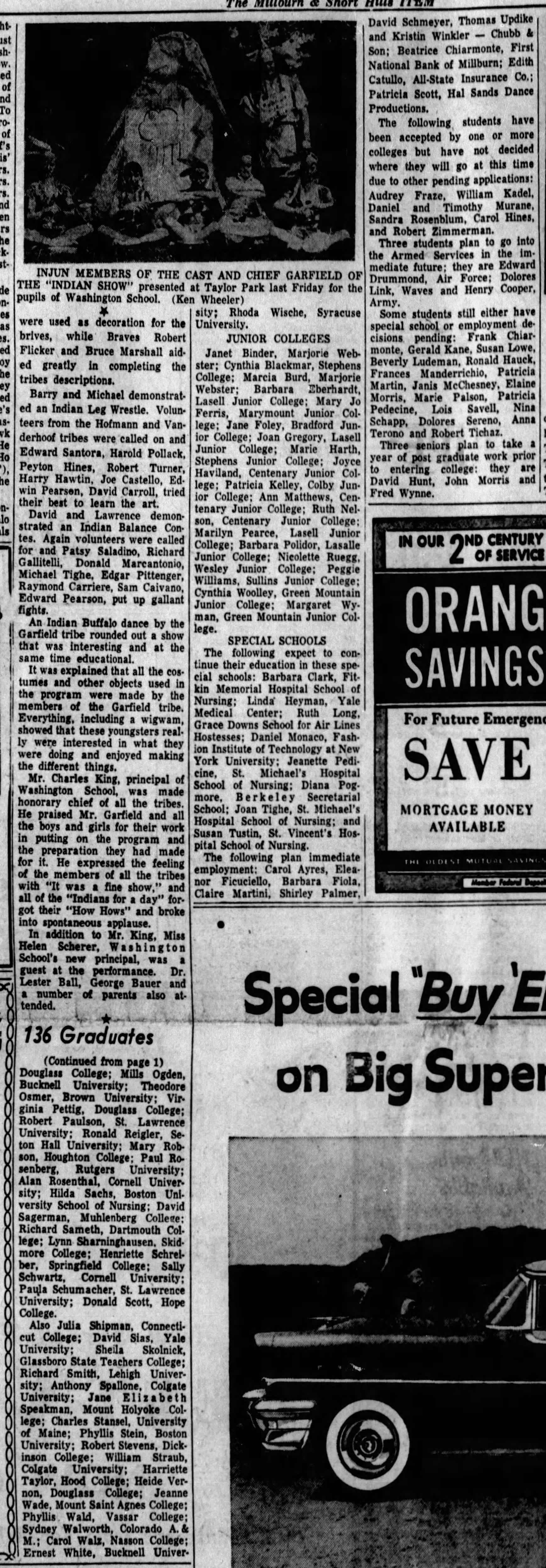 1955 Millburn High School Millwheel Yearbook