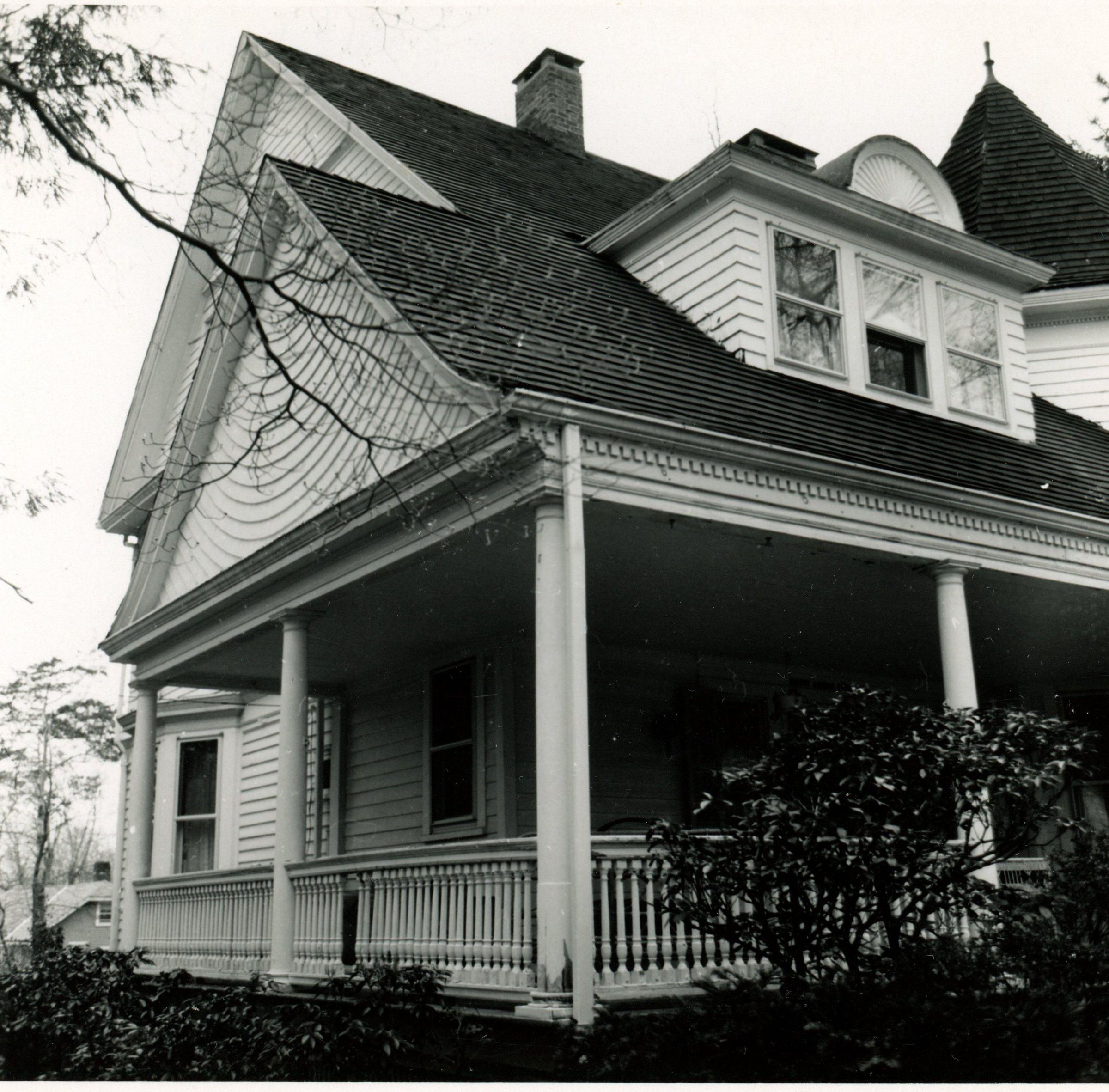 Photographs of 80 Linden Street in the Wyoming section of Millburn from the 1978 David Gibson Architectural Survey. The house has been dated to c. 1892, although there have been suggestions of an earlier date in the 1870s. The house does not appear on the 1881 Williamson map. The architect is unknown. The house is in the Queen Anne Style and features an octagonal tower.