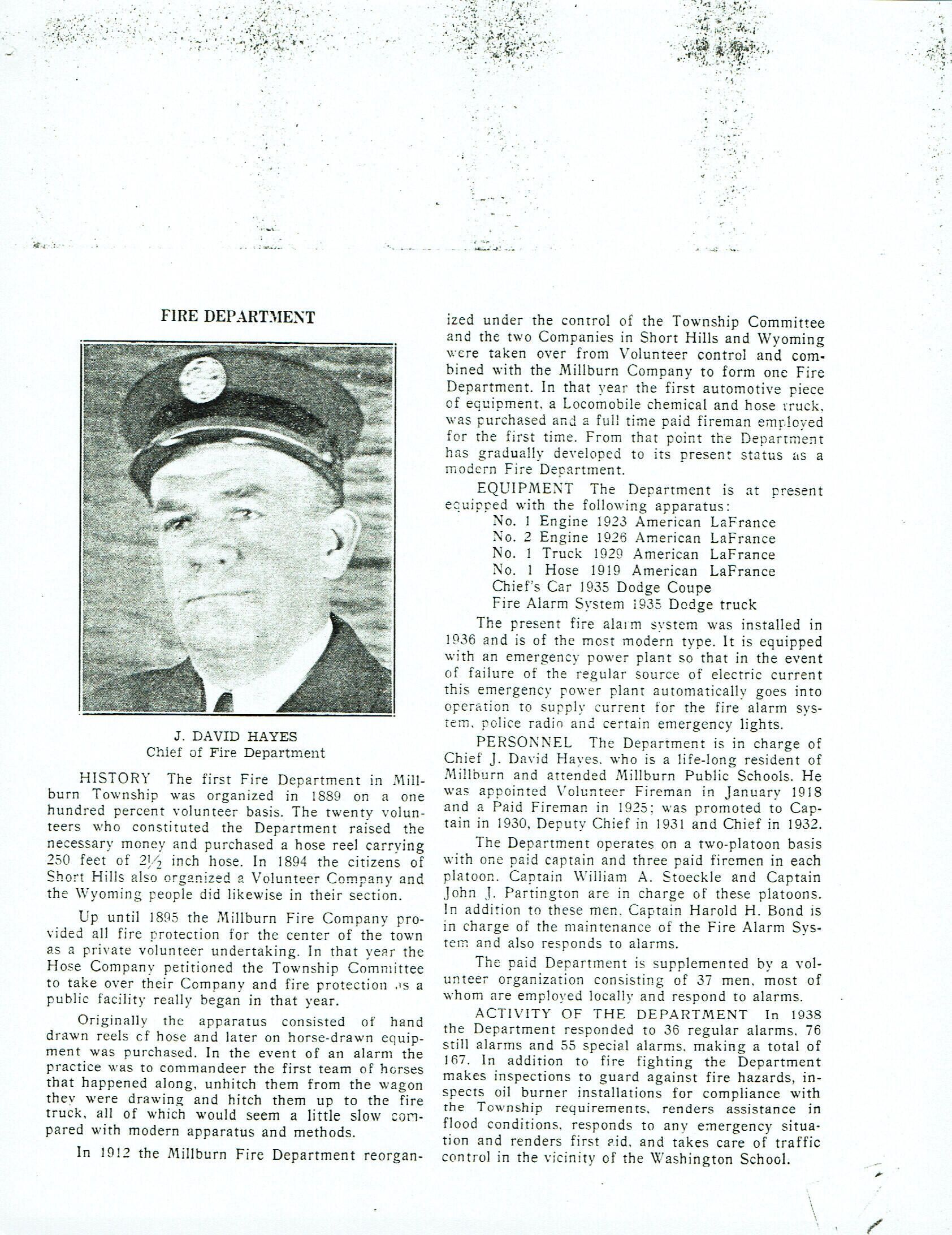 8 page illustrated report from the Millburn Township Committee. Topics included are: Flood Control and Sewer Projects, Rahway River, WPA, Flood Mitigation, Millburn Police Department, C. Norbert Wade, Millburn Fire Department, J. David Hayes, The Township's Development, 1939 Budget.Collection