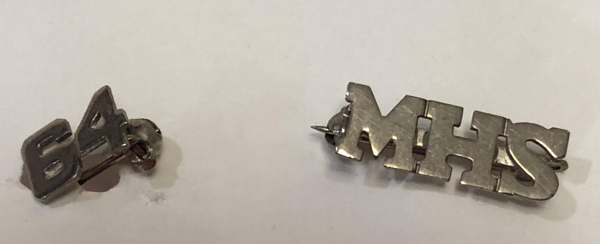 Millburn High School Pins for shirt collars. MHS and '64. Belonged to Linda Miller Carrington, MHS class of 1964Acquisition