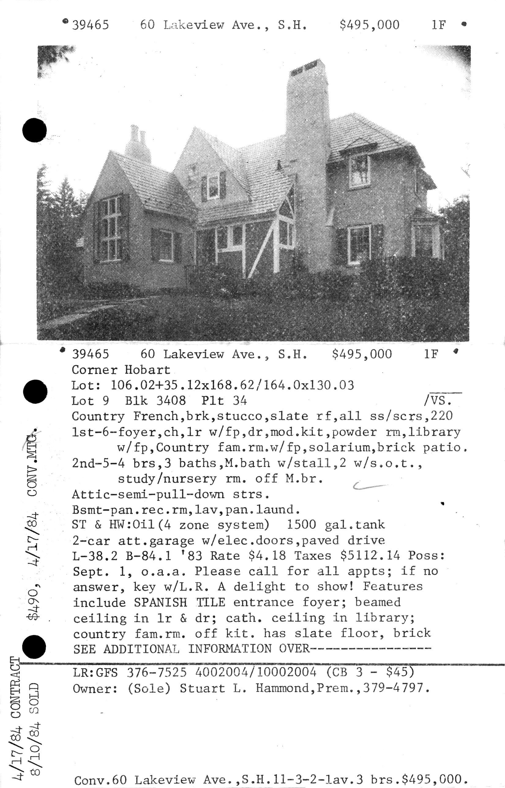 Previous owners: K. Whitney Dalzell, Jr. (May 1952), Mr. and Mrs. Stuart Hammond (February 1955)