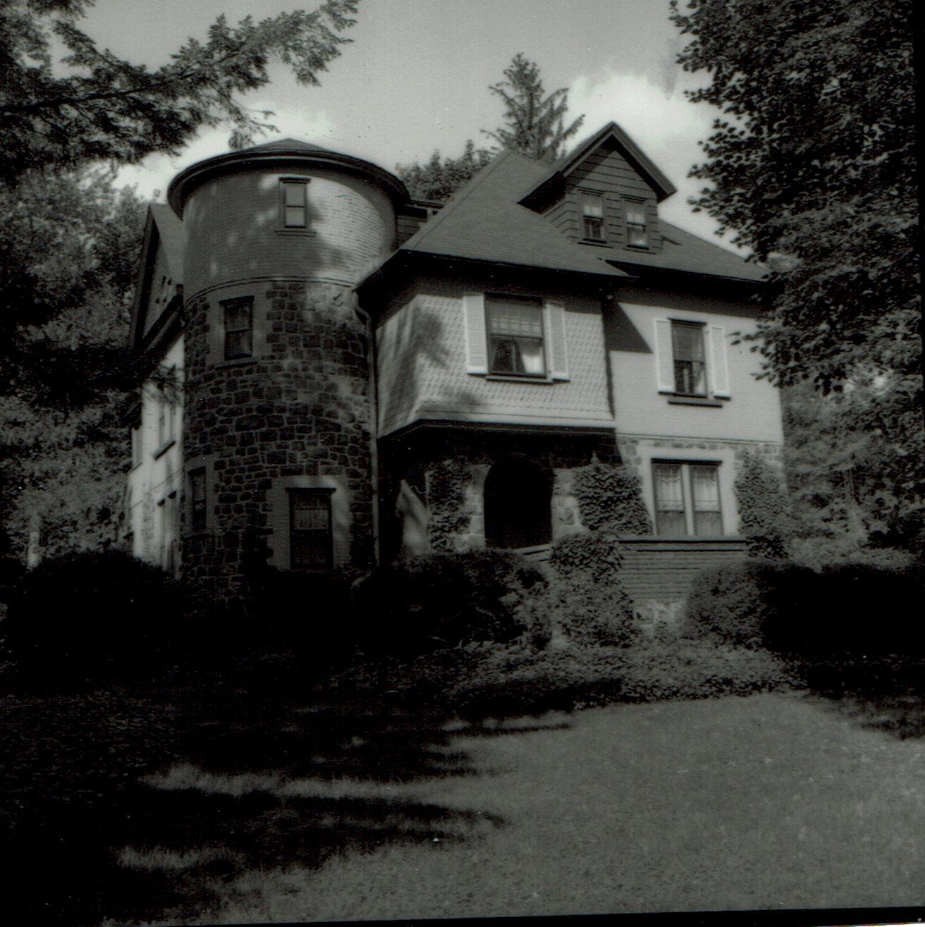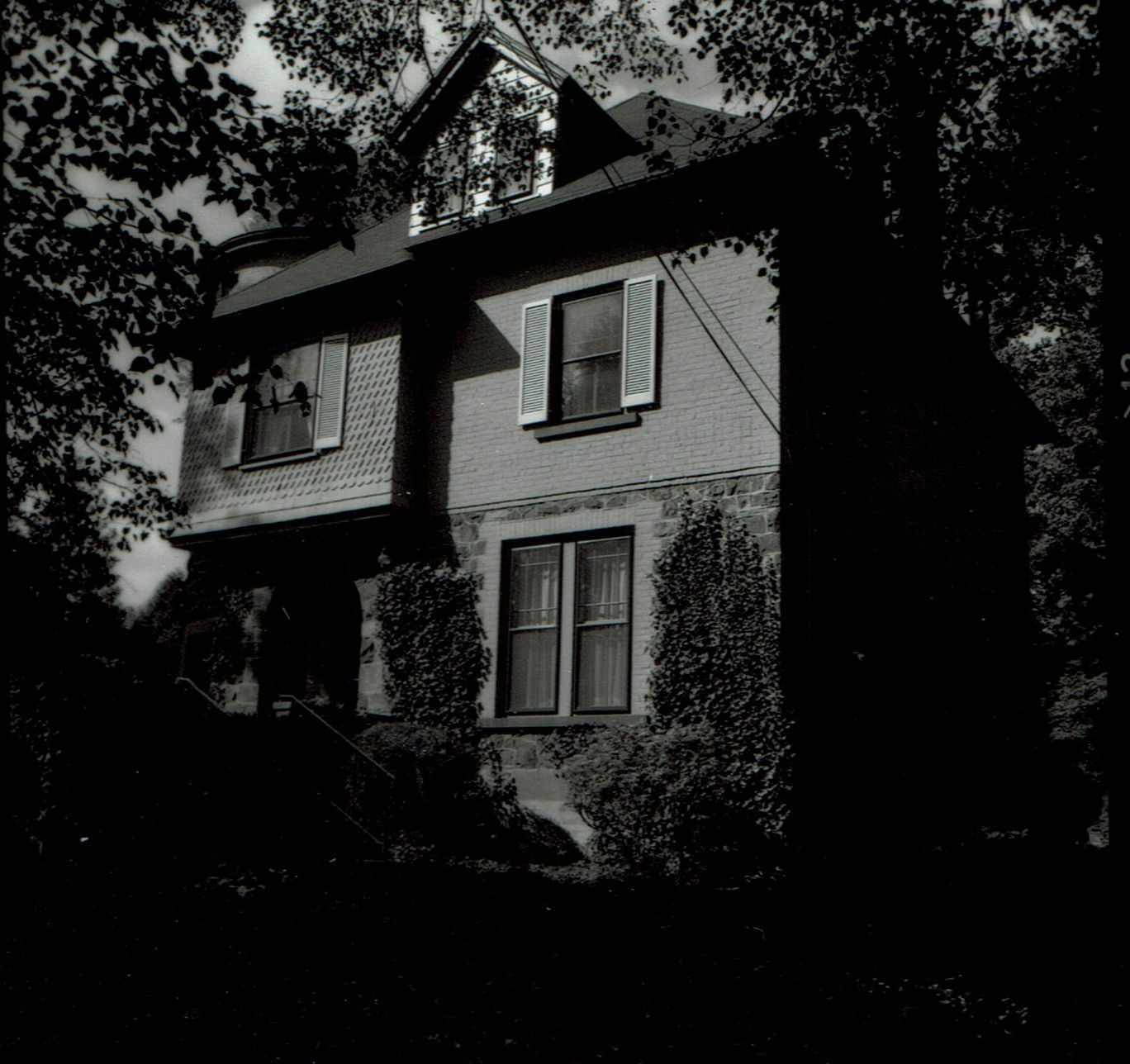 Photograph of 63 Crescent Place from the 1978 David Gibson Historic Sites Survey. One of the original Hartshorn Homes (Hartshorn House #48). Architects Swinnerton and Poole. Queen Anne shingle style with eclectic architectural features. Cora Hartshorn lived in the house with her father until he died in 1937. At that time the house was empty and on the marked. She close to move from the large Hartshorn home at 163 Highland Avenue after he died to this house, where she lived from 1837 until her death in 1958. She lived in the house with her companion Miss Dottie Brush.Collection