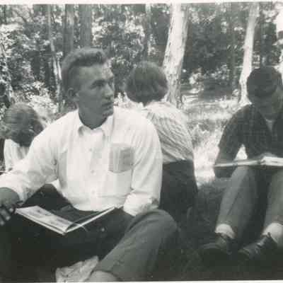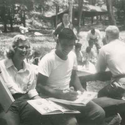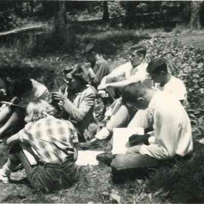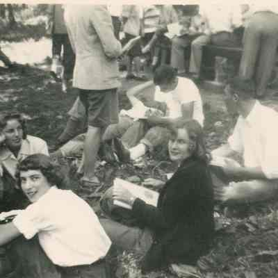 Photographs (6) of students from the class of 1949 signing yearbooks.Collection