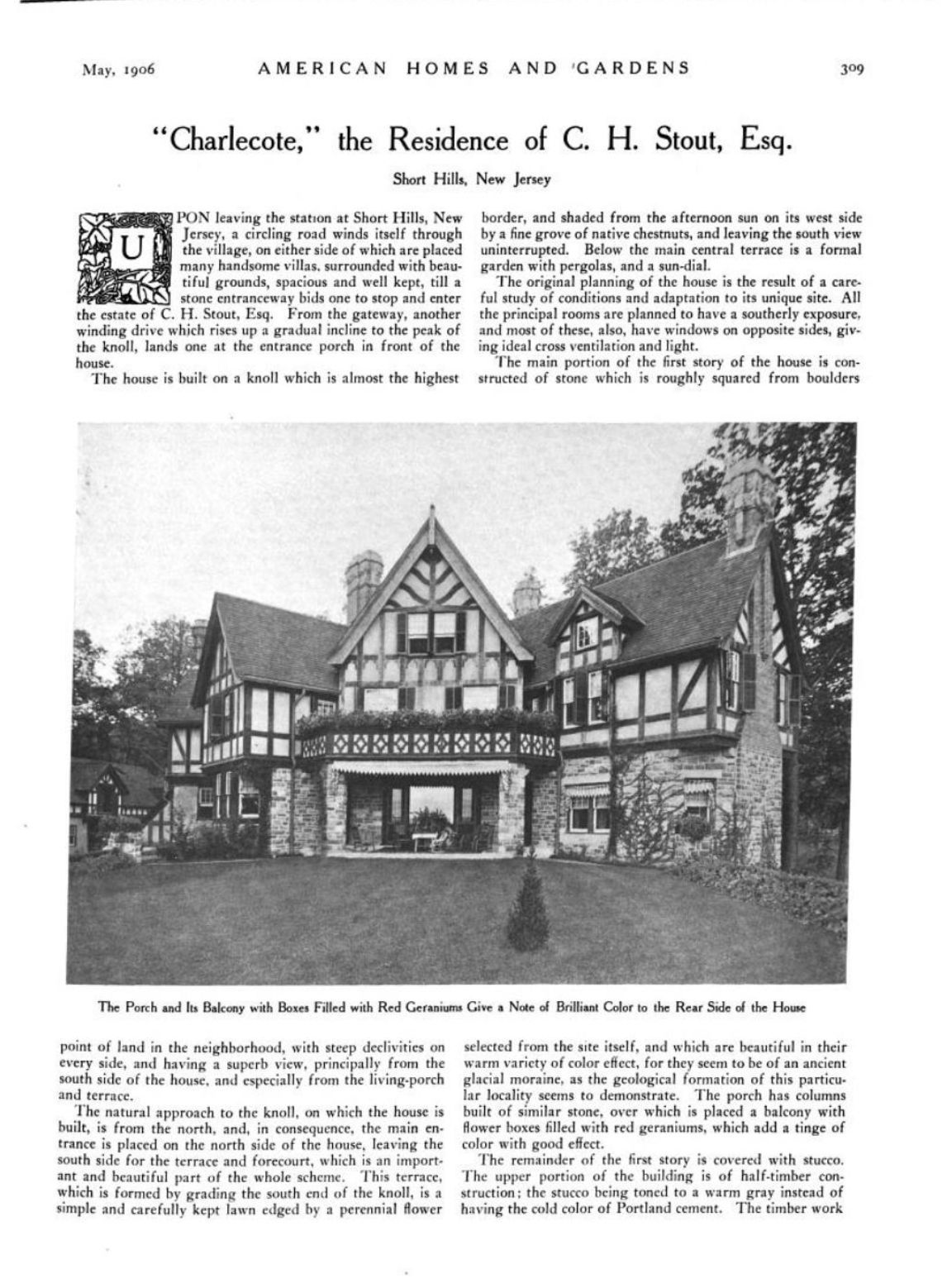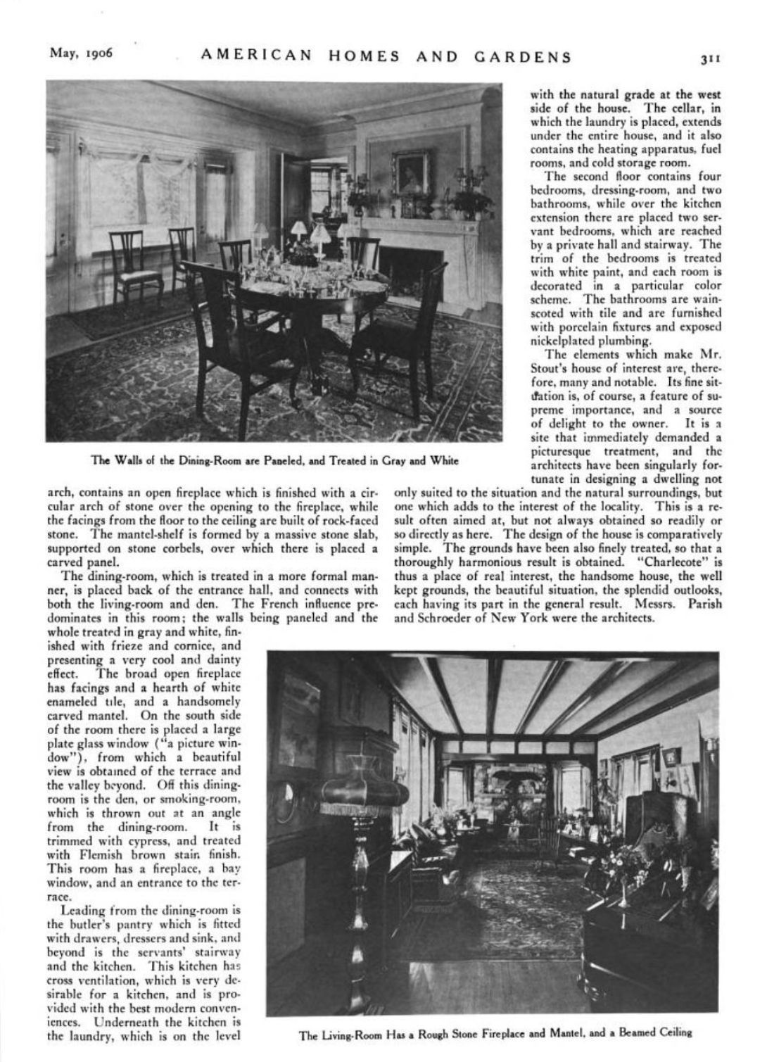 American Homes and Gardens, May 1906, p. 309-12.