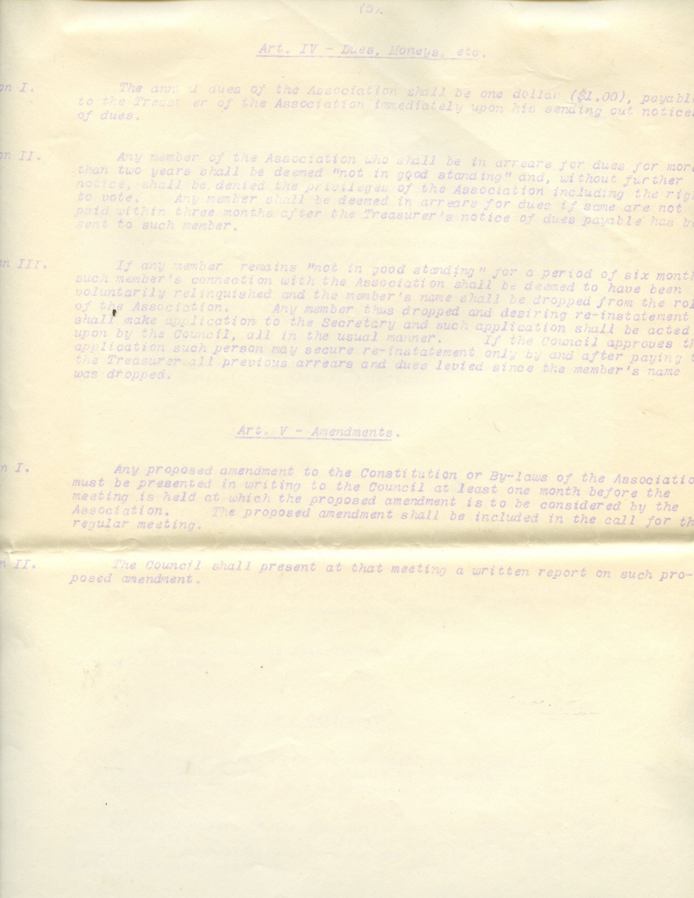 5 page typewritten copy of the The Wyoming Civic Association Constitution and By-LawsCollection