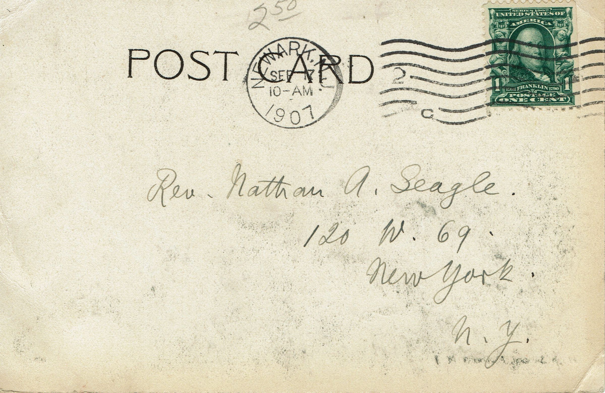 Postally used B&W photographic postcard entitled "High School, Millburn, N.J." depicting the Short Hills School on Hobart Avenue, which housed the Millburn High school at the time. Postmarked Newark, September 17, 1907. Handwritten note on front of postcard states: Reverend Aug. Ulmann, Principal.Collection