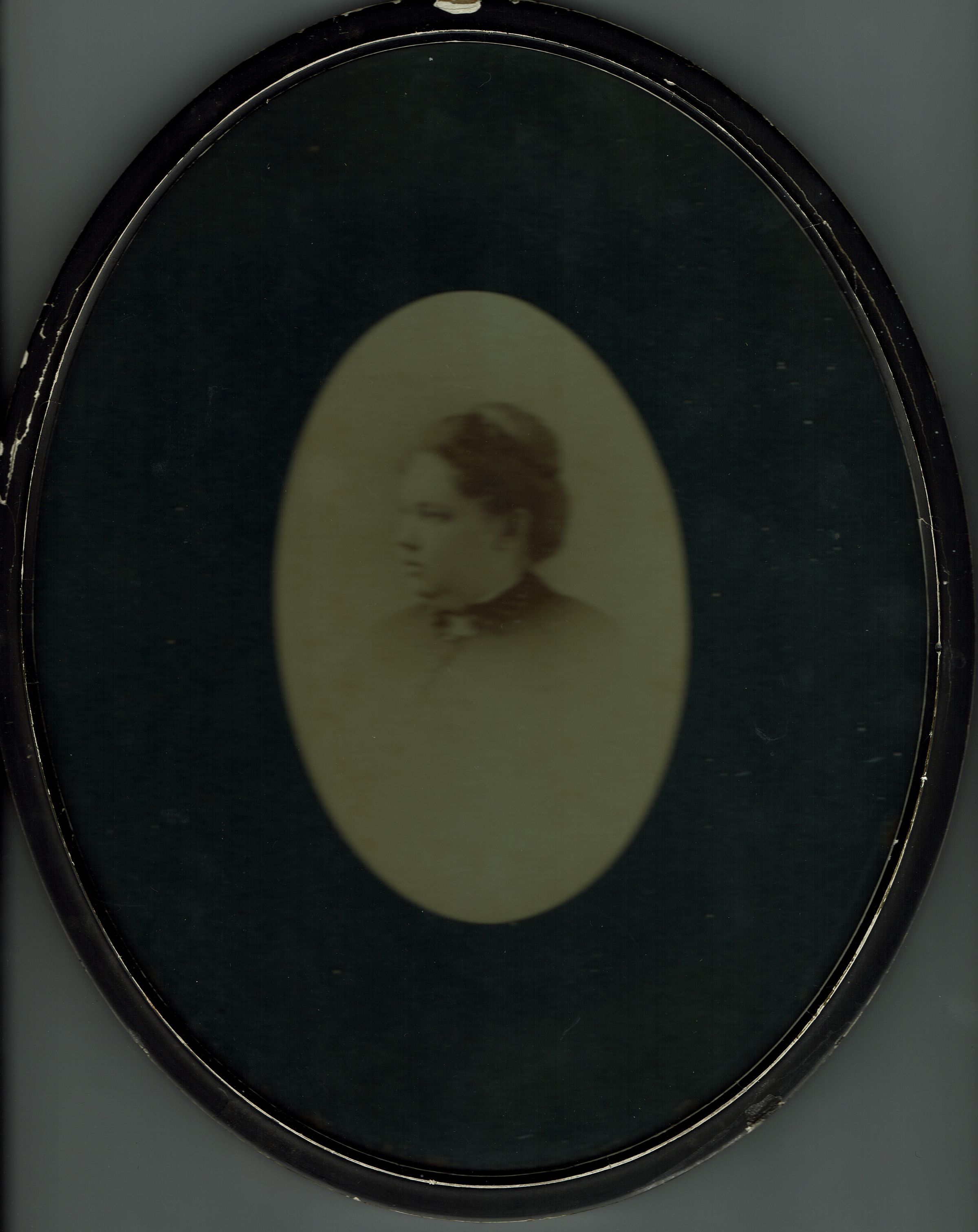 Photograph of Mary Elizabeth Benson Ives, wife of James F. Ives, and sister of Emelie Benson Welsh. Photograph mounted in oval frame.Collection