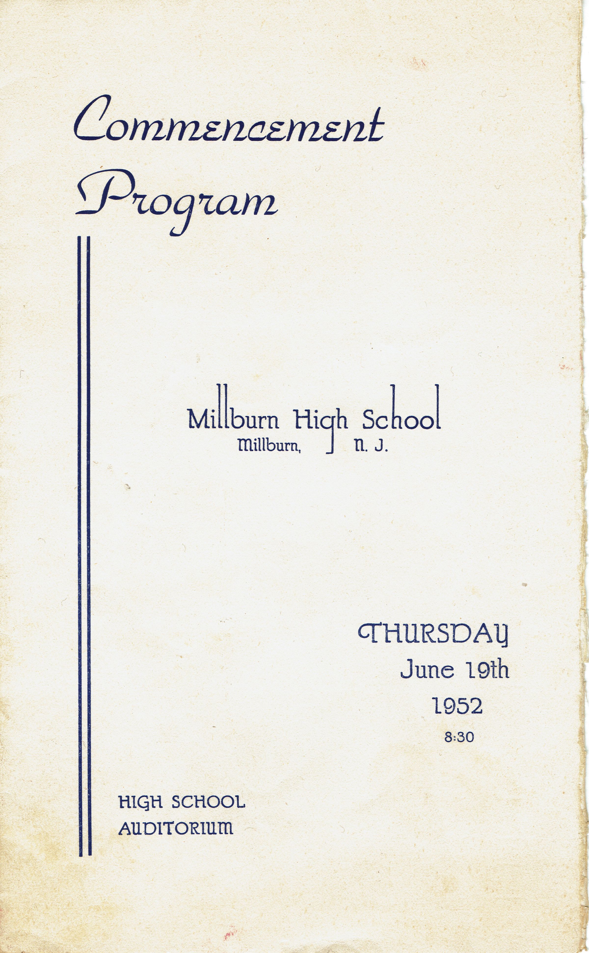 Commencement Program for Millburn Senior High School, Thursday, June 19, 1952. 4 pp.Acquisition