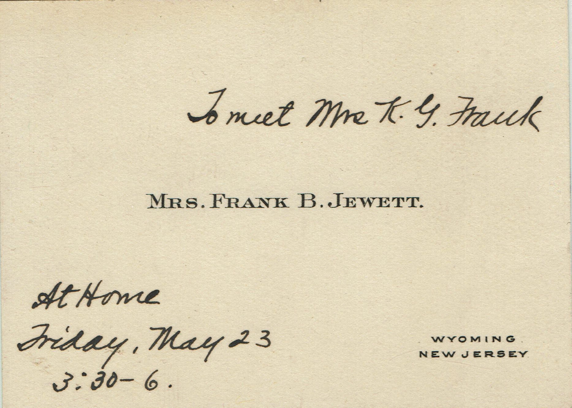 Kellogg: Mrs. Frank B. Jewett Calling CardEntry/Object ID