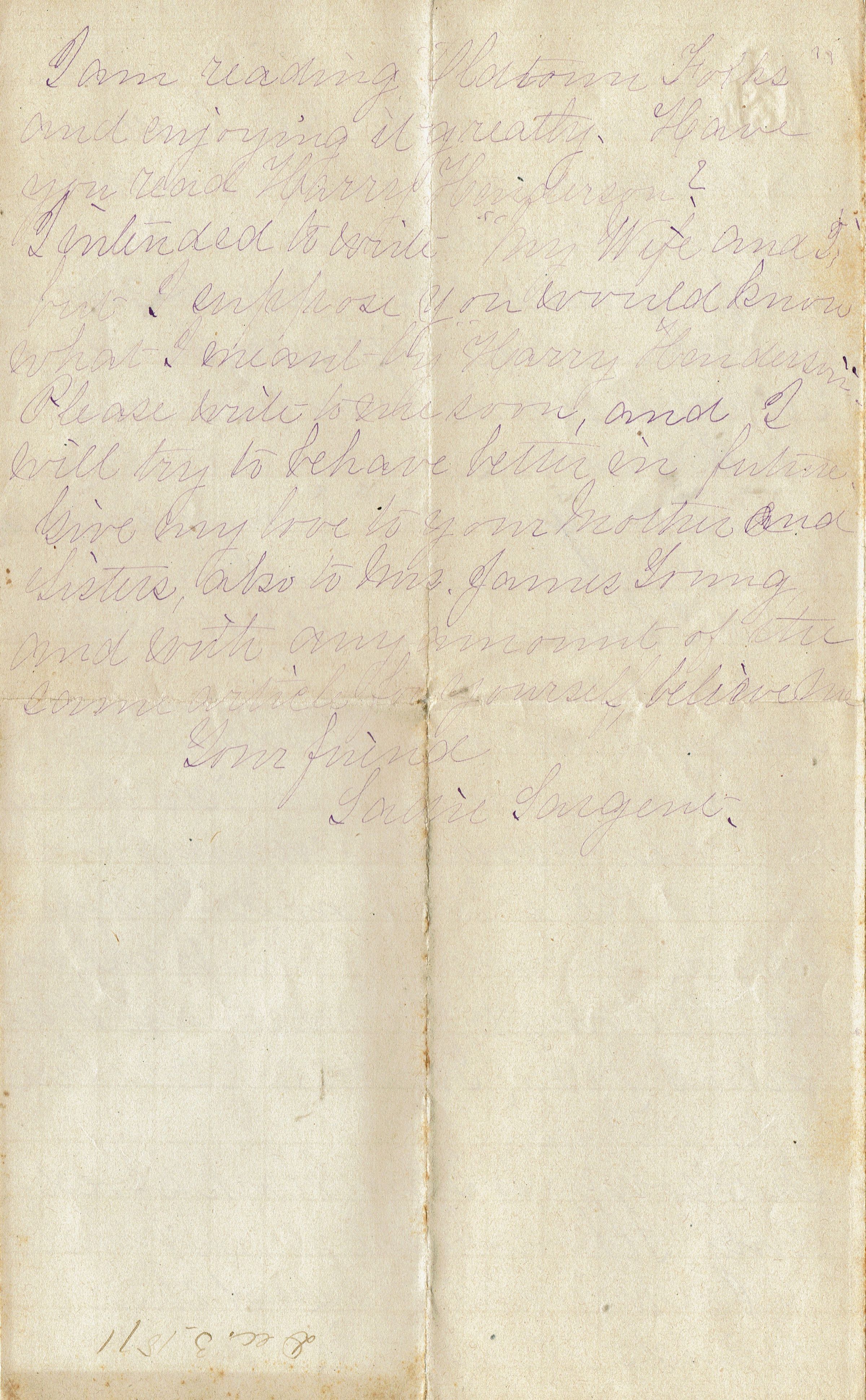 Four-page letter from Laurie Sargent to Bessie Kellogg dated December 3, 1871. Part of collection of letters from the early 1870s to Bessie Kellogg.Collection