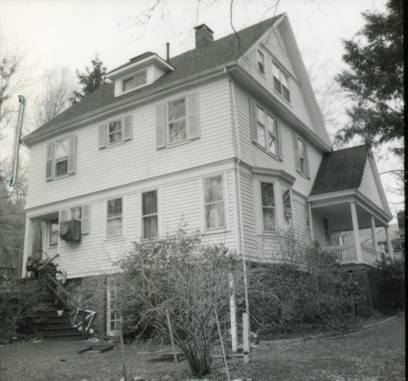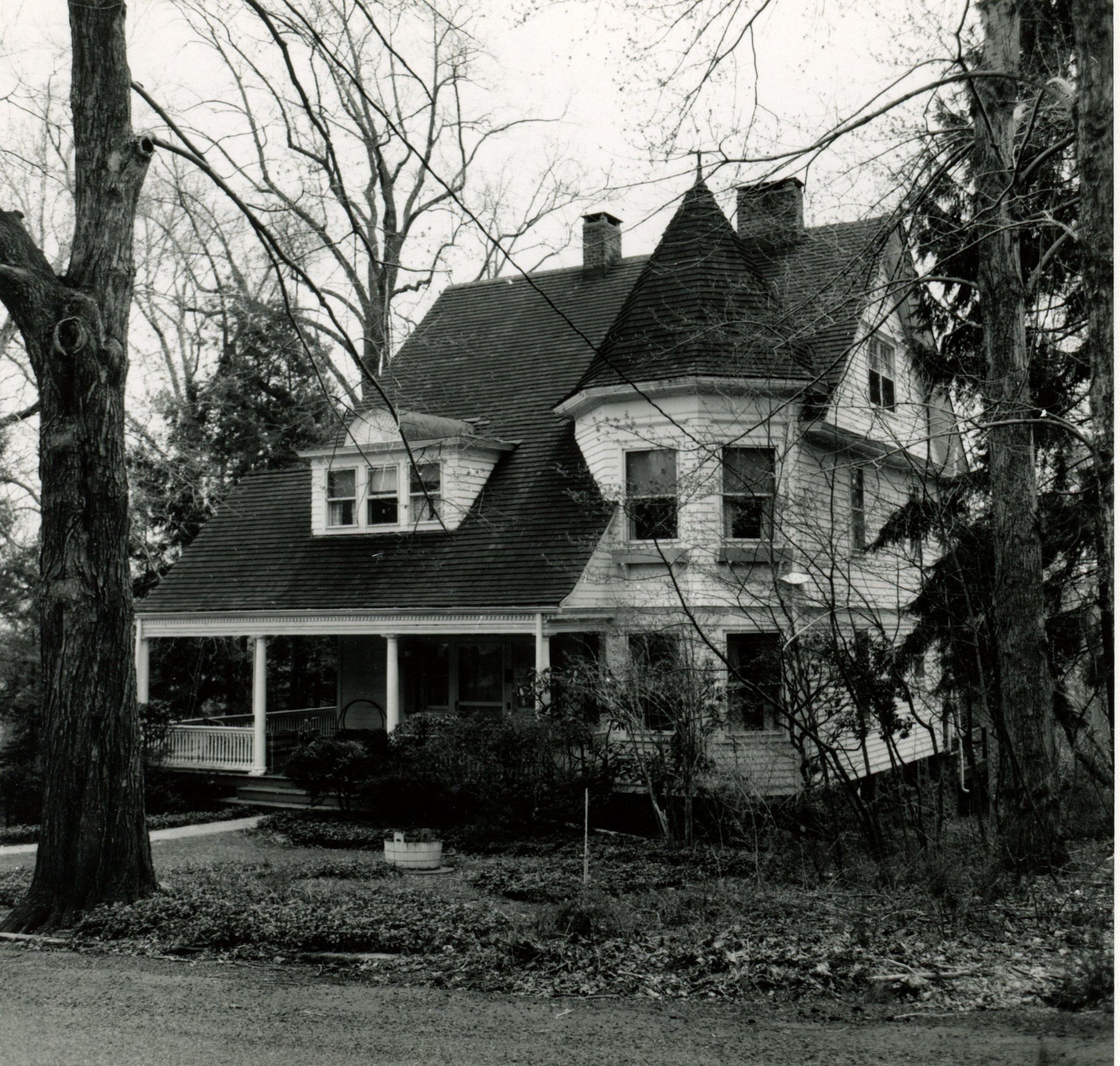 Photographs of 80 Linden Street in the Wyoming section of Millburn from the 1978 David Gibson Architectural Survey. The house has been dated to c. 1892, although there have been suggestions of an earlier date in the 1870s. The house does not appear on the 1881 Williamson map. The architect is unknown. The house is in the Queen Anne Style and features an octagonal tower.