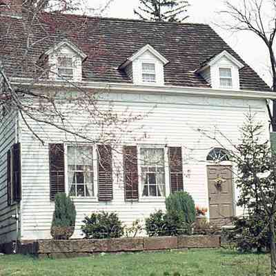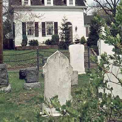 Photograph of the Parsil House and Revolutionary War cemetery across White Oak Ridge Road taken by Owen Lampe in December 1975, prior to the start of renovations.Photograph Details