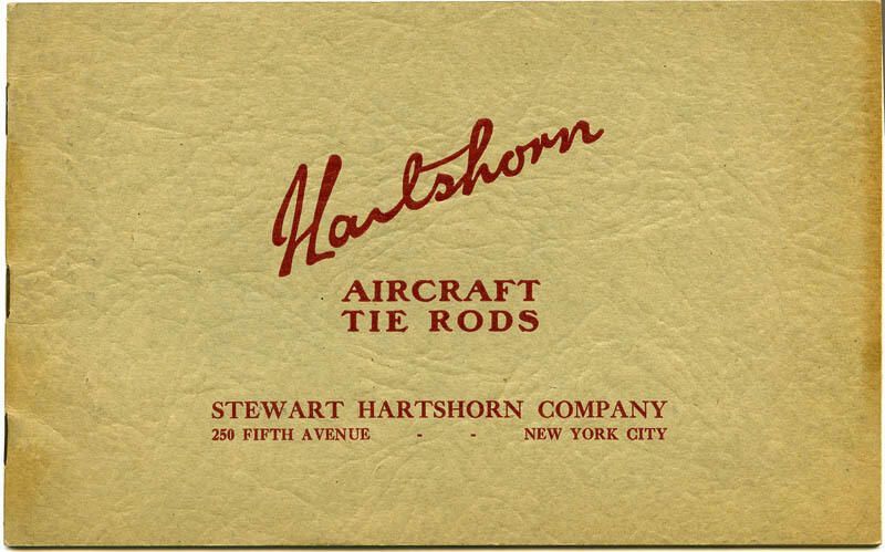 15-page Hartshorn advertising catalog for his aircraft tie rods. Contains A Brief History of the Development of Aircraft Tie Rods and specifications for tie rods.Acquisition