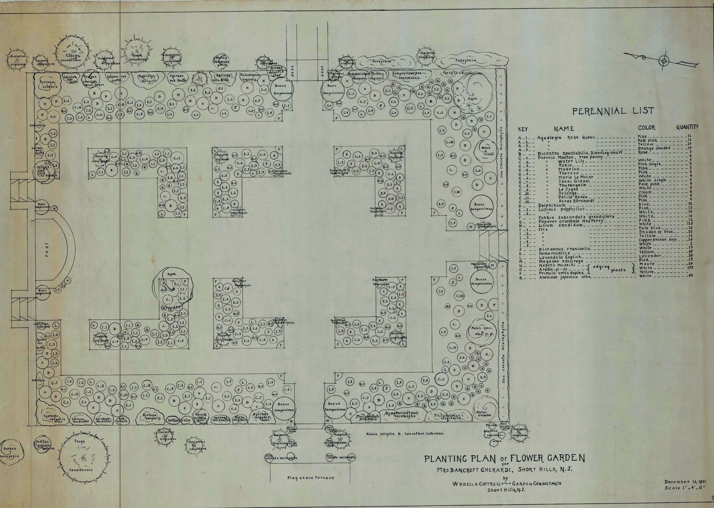 Wodell and Cottrell planting plan of flower garden for Mrs. Bancroft Gherardi, Short Hills, December 12, 1931.Collection