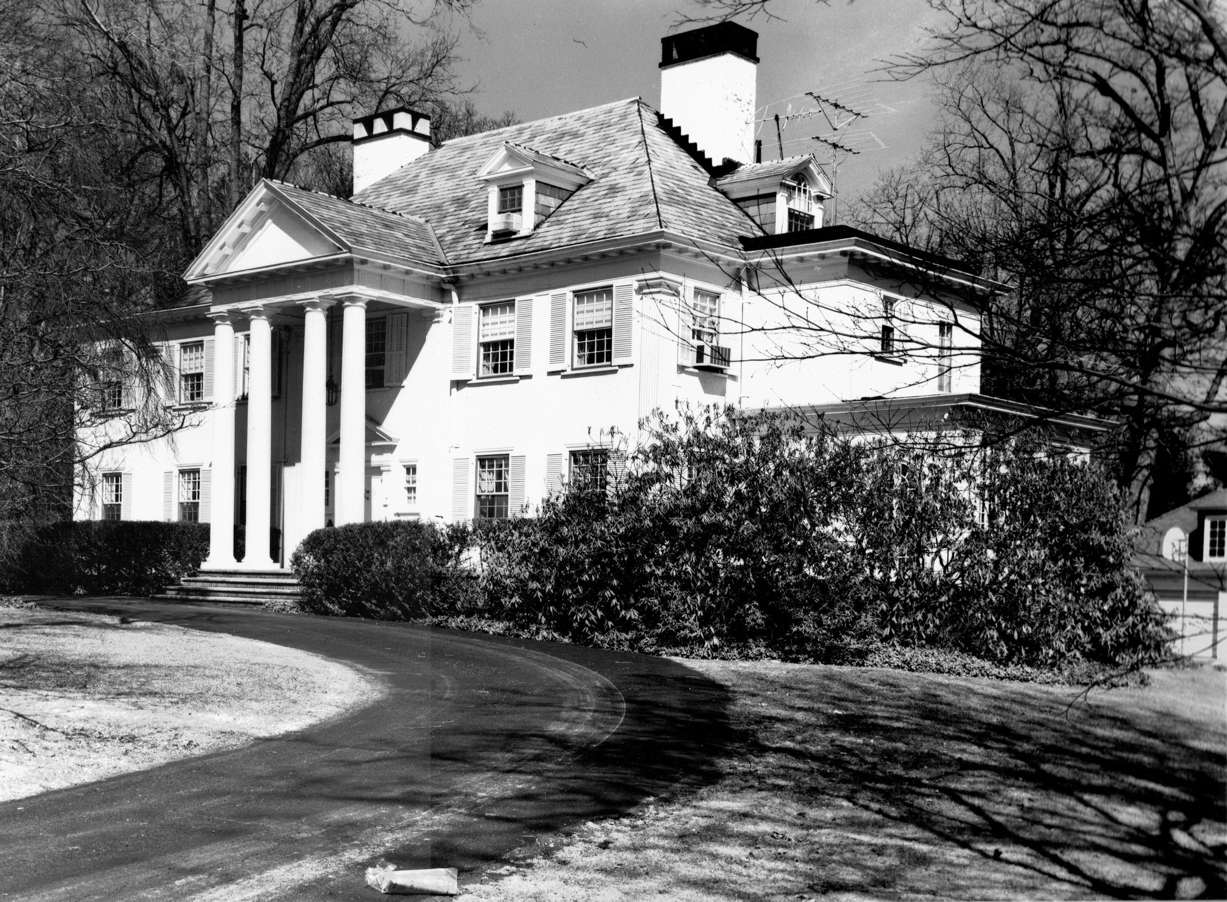 This house is an example of how an architect would combine features from several colonial periods. The portico is Greek Revival in the Doric order, although in true Doric, the fluted shafts would not rest upon a base. In this order, the frieze is composed of triglyphs and metopes and the pediment is left plain. The hipped roof and dormers are Georgian.Collection