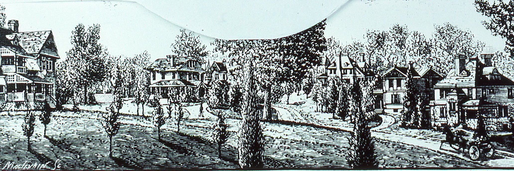 Slide of an etching showing a view up Knollwood Road, Short Hills, c. 1880.Collection