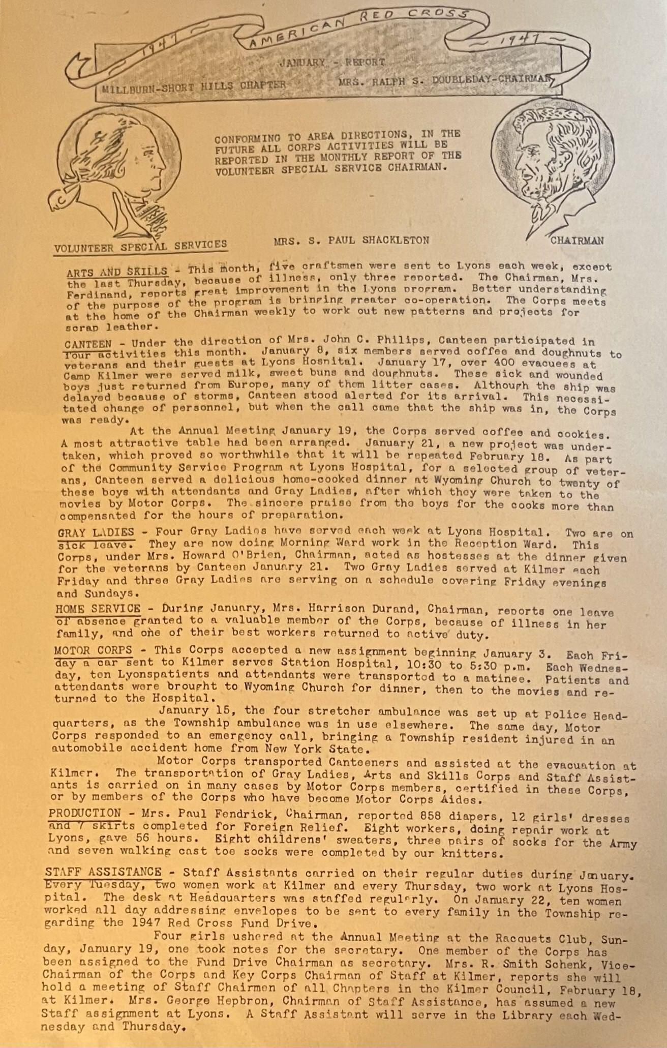 American Red Cross January 1947 List of Services Report. Total number of pages: 2.Collection
