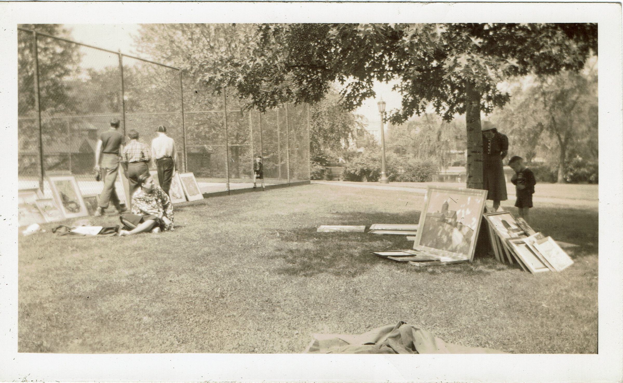 Second photograph shows paintings before or after the exhibtion in Taylor Park.Collection