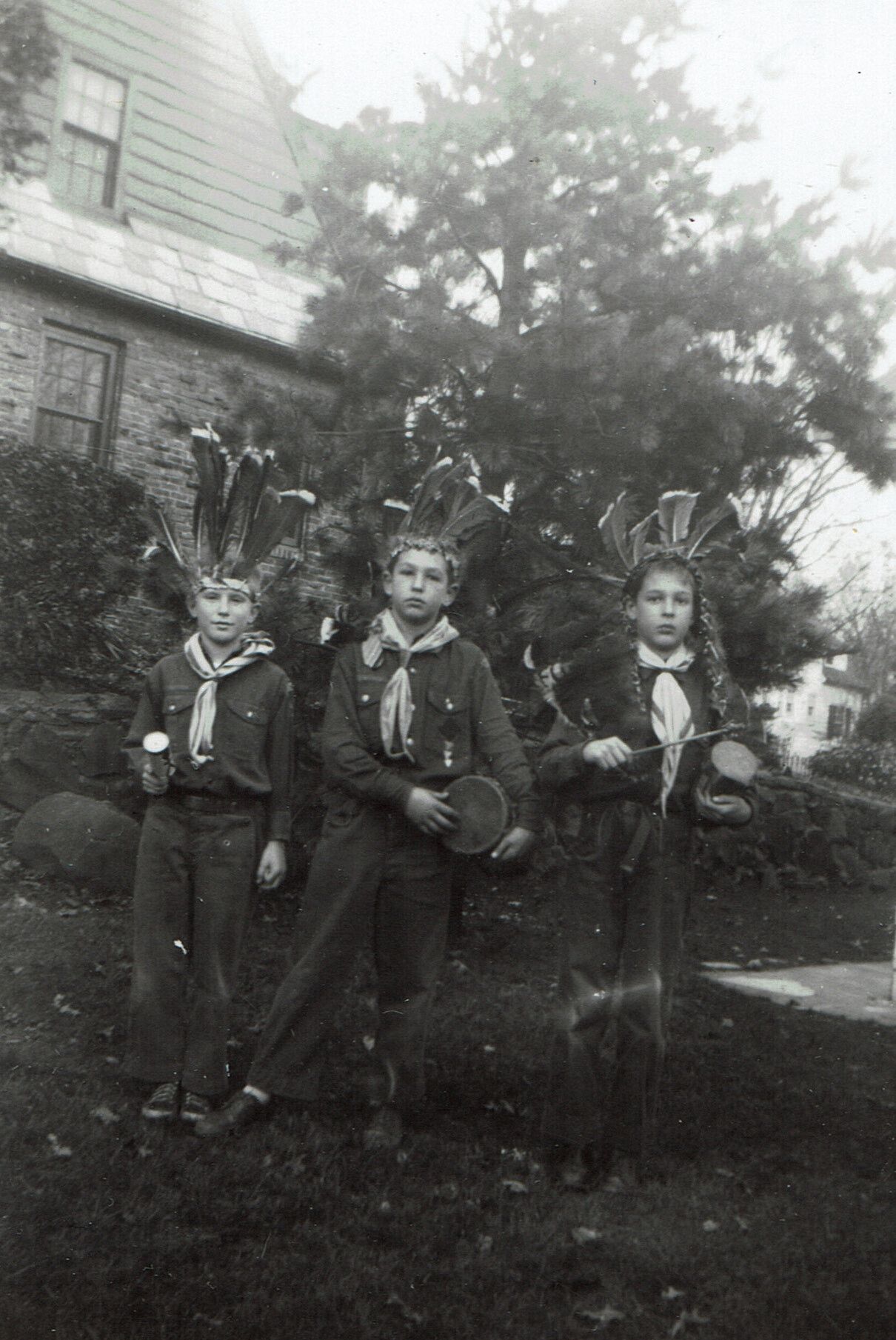 Set of 4 Photographs of Cub Scouts dressed up as American Indians and animals, perhaps for a performance. Photographs were inside a 1951 advancement ceremonies program, donated by Mrs. Charles T. King. Identity of boys is unknown.Acquisition